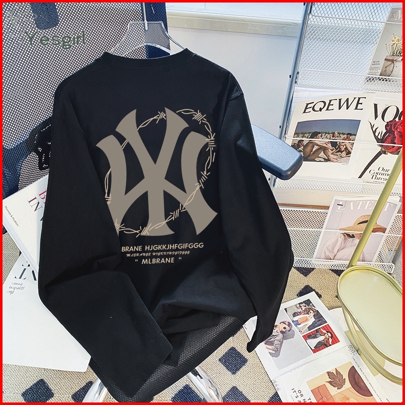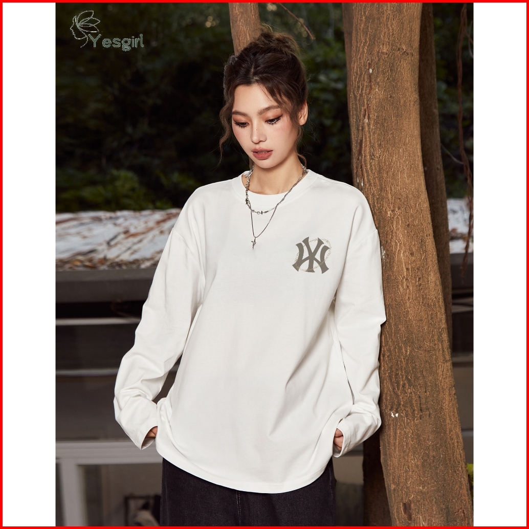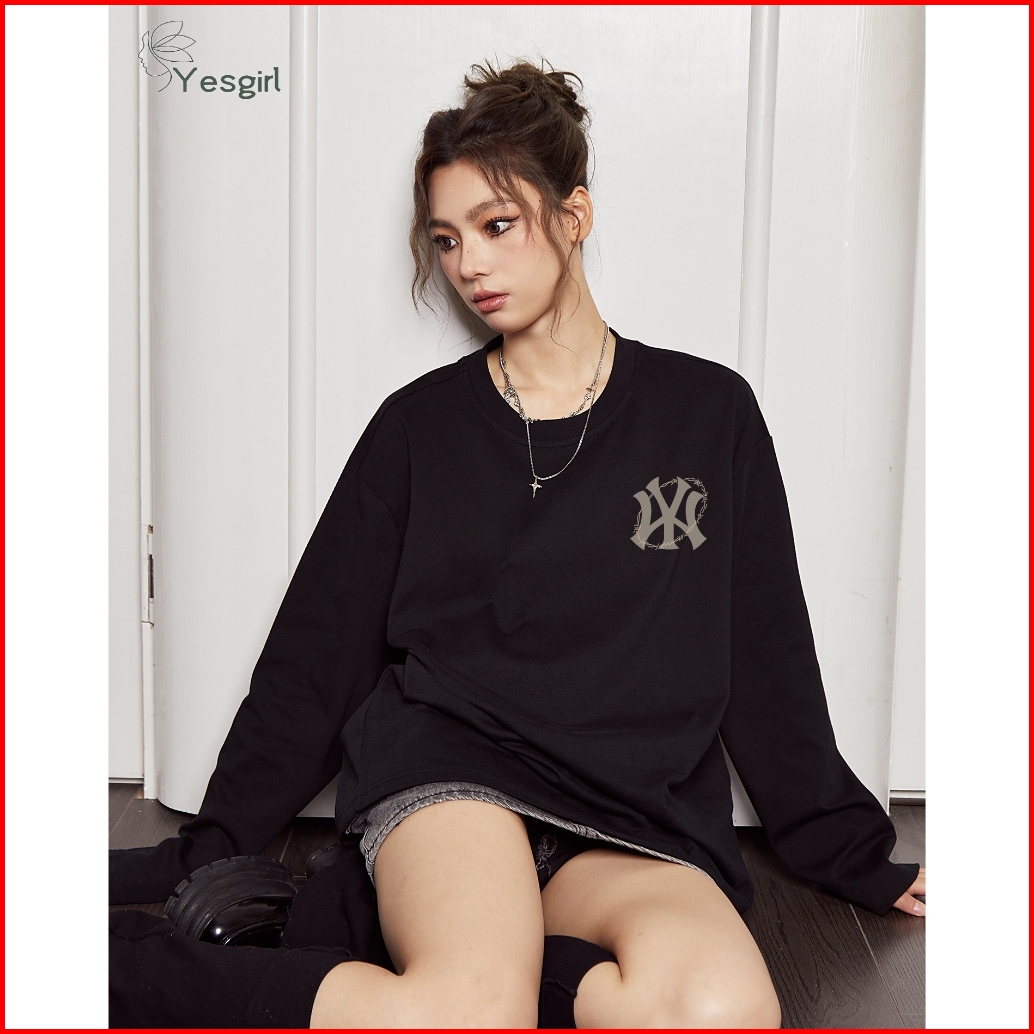 Yesgirl Korea Style Surround Mb Print Kaos Kasual Longgar Lengan Panjang Oversize Wanita Busana Gaya Korea Lengan Panjan