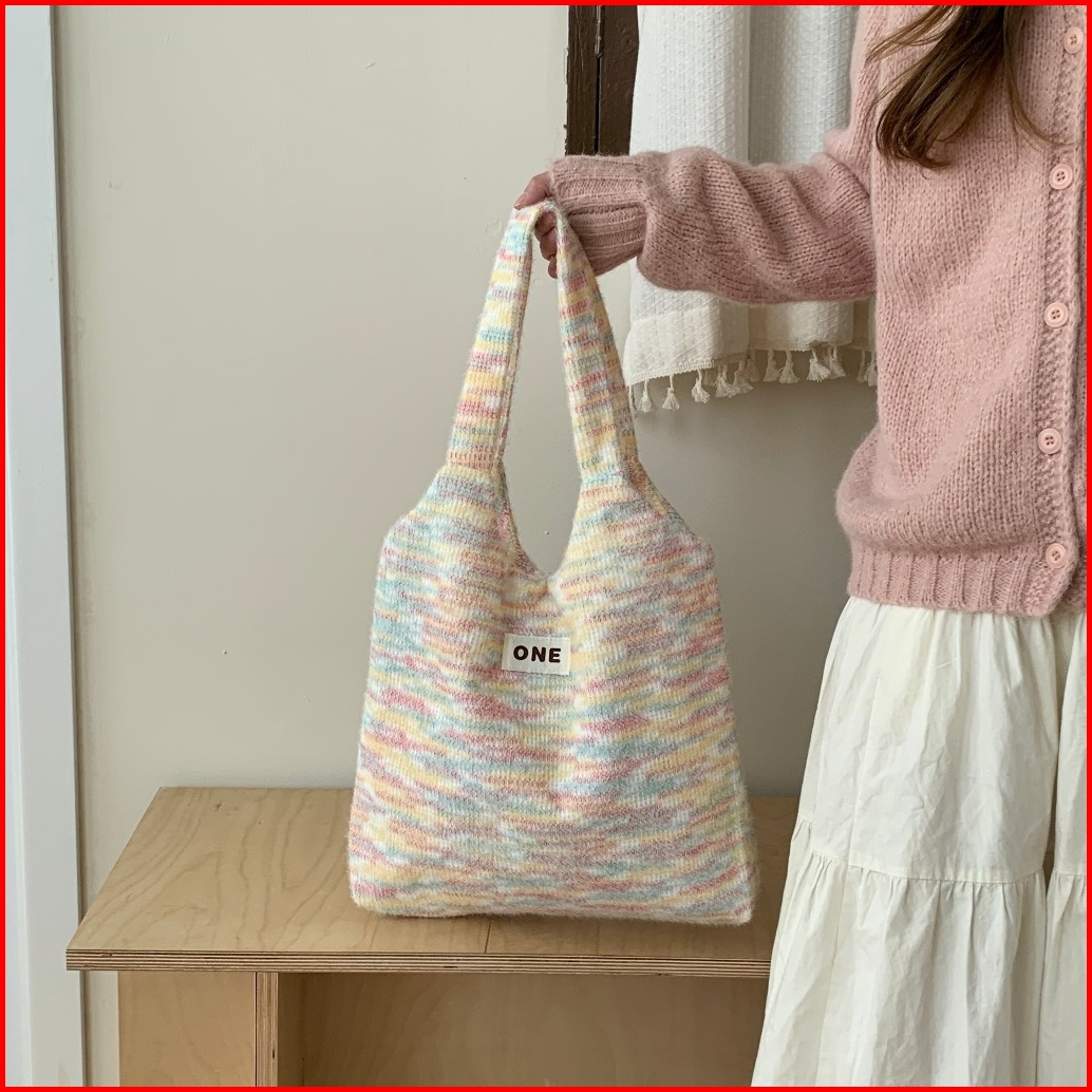 Tas Ransel Selempang Wanita Tas Bahu Rajutan Pelangi Baru Untuk Tas Tote Shoulder Bag Tas Ransel Wanita Import Korea Tas