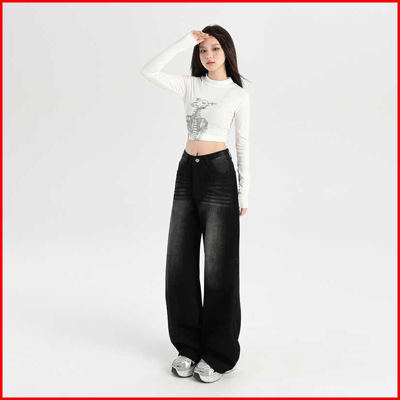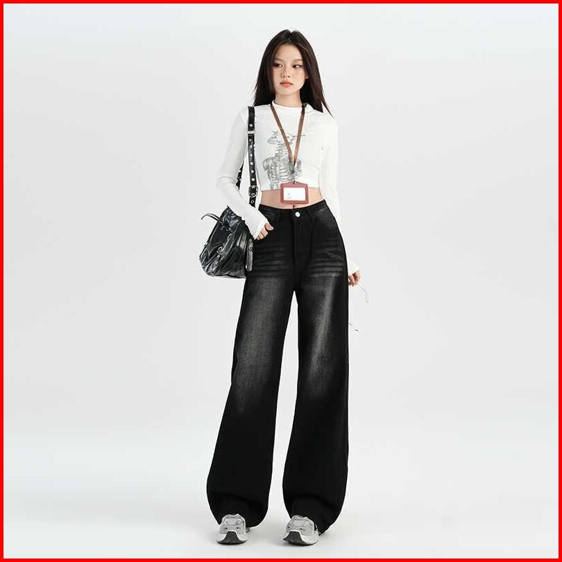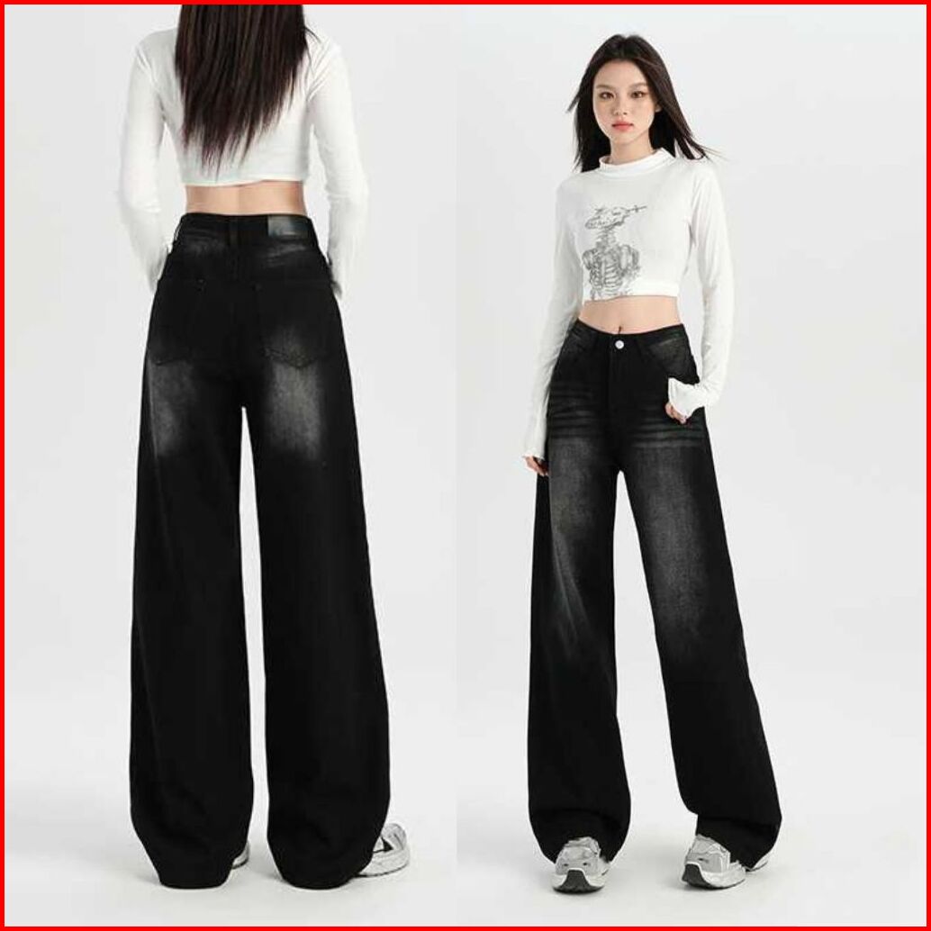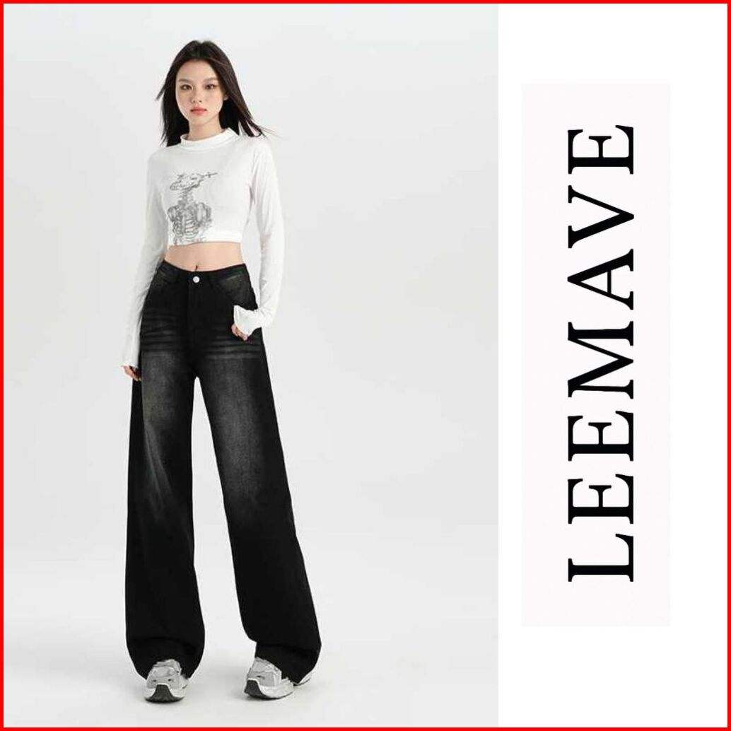 Leemave - Jeans Celana Gombrong American Retro Wide Leg Jeans Women S High Waist Loose Slimming Draping Pants