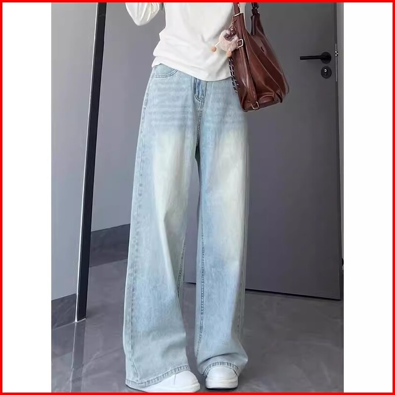 Keygirl Real Pictcelana Highwaist Baggy Loose Jeans Retro Straight Celana Jeans Wanita Kulot Korean Style Kekinian