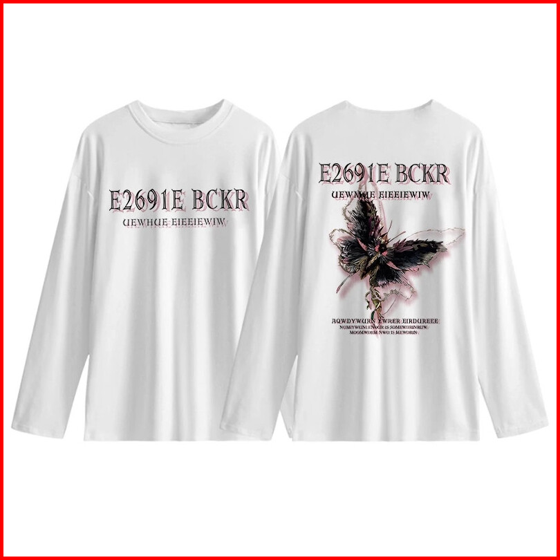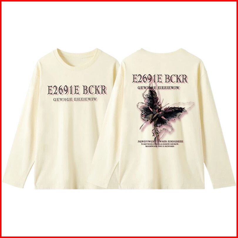 Kaos Lengan Panjang Pola Cetak Kupu-kupu Korean Style Bahan 100 Cotton Premium