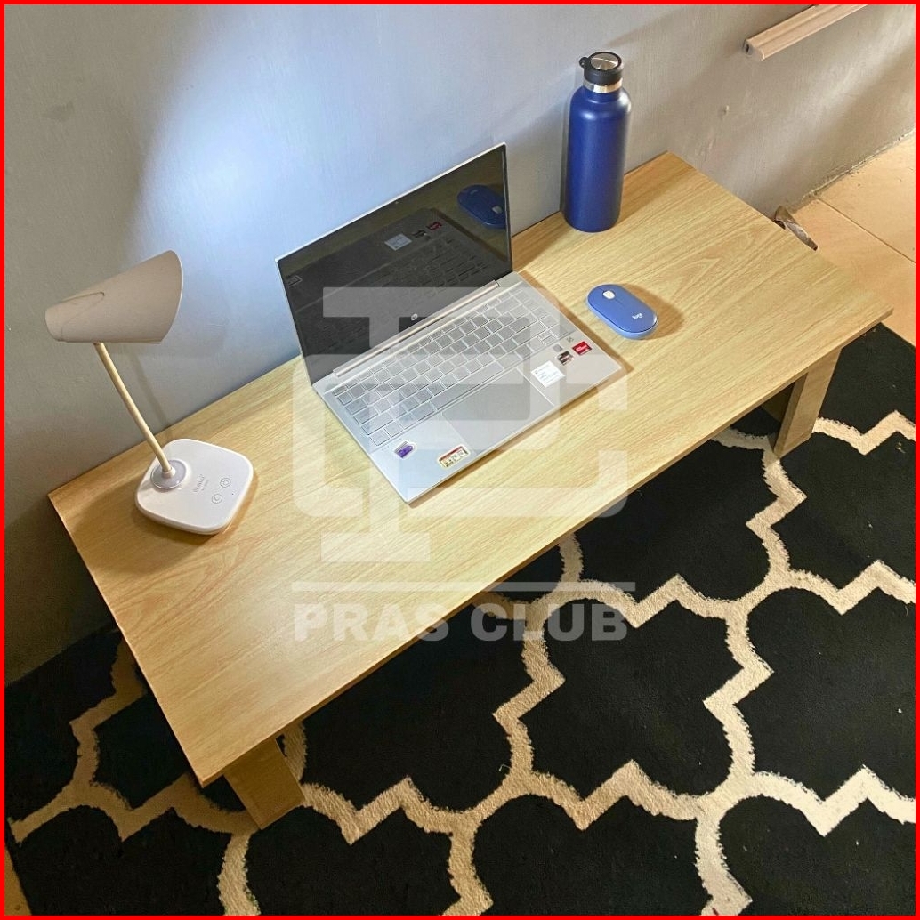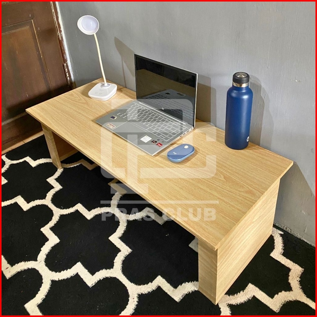 Meja Lesehan Serbaguna Minimalis Untuk Belajar Kerja Putih Hitam Kayu
