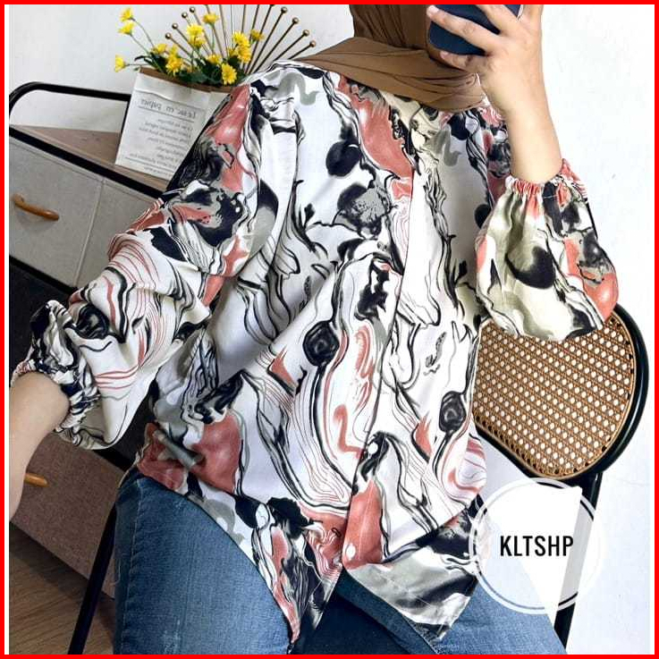 Kemeja Rayon Motif Lengan Panjang - Kemeja Wanita Rayon Motif Viral - Atasan Kemeja Wanita Viral - Blouse Motif Viral -