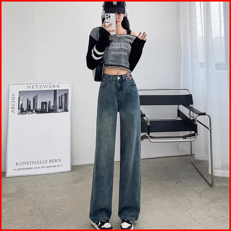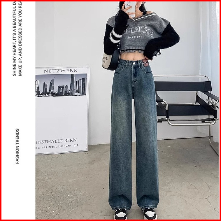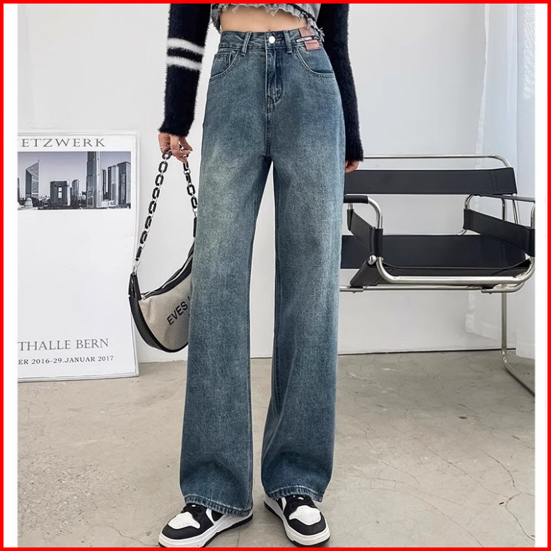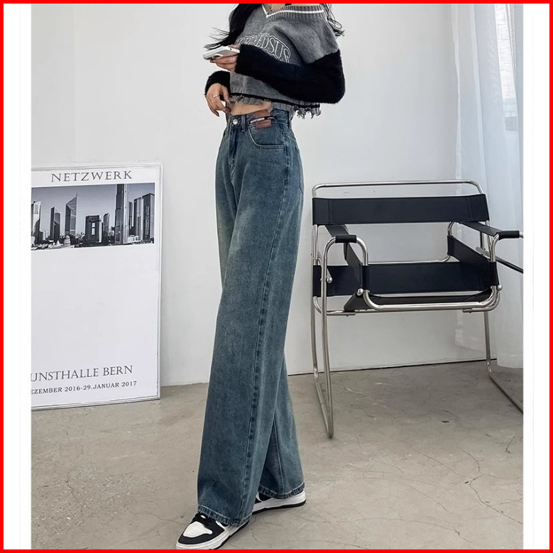 Keygirl Jumbo Highwaist Loose Jeans Kulot Biru Retro Korea Style Straight Pants Premium Kekinian