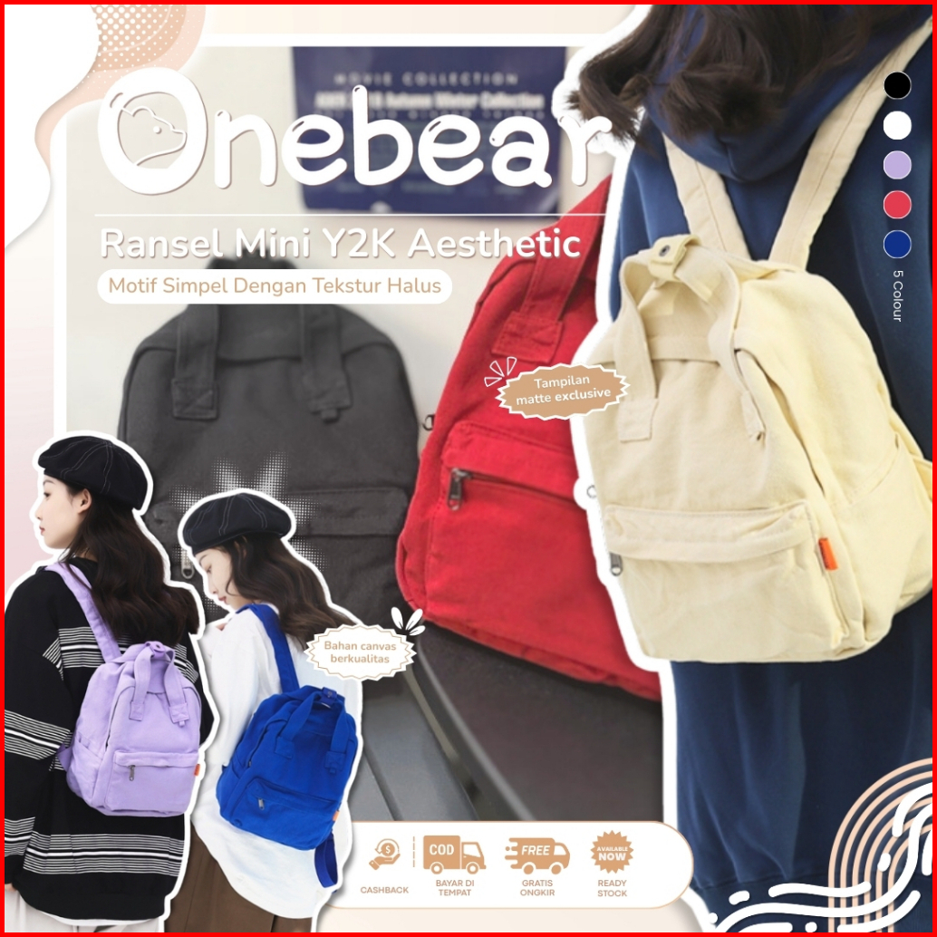 Onebear Japan Tas Ransel Mini Backpack Kanvas Wanita Tas Sekolah Y2k Aesthetic Ransel Kuliah Kecil Miniso White Tas Pung