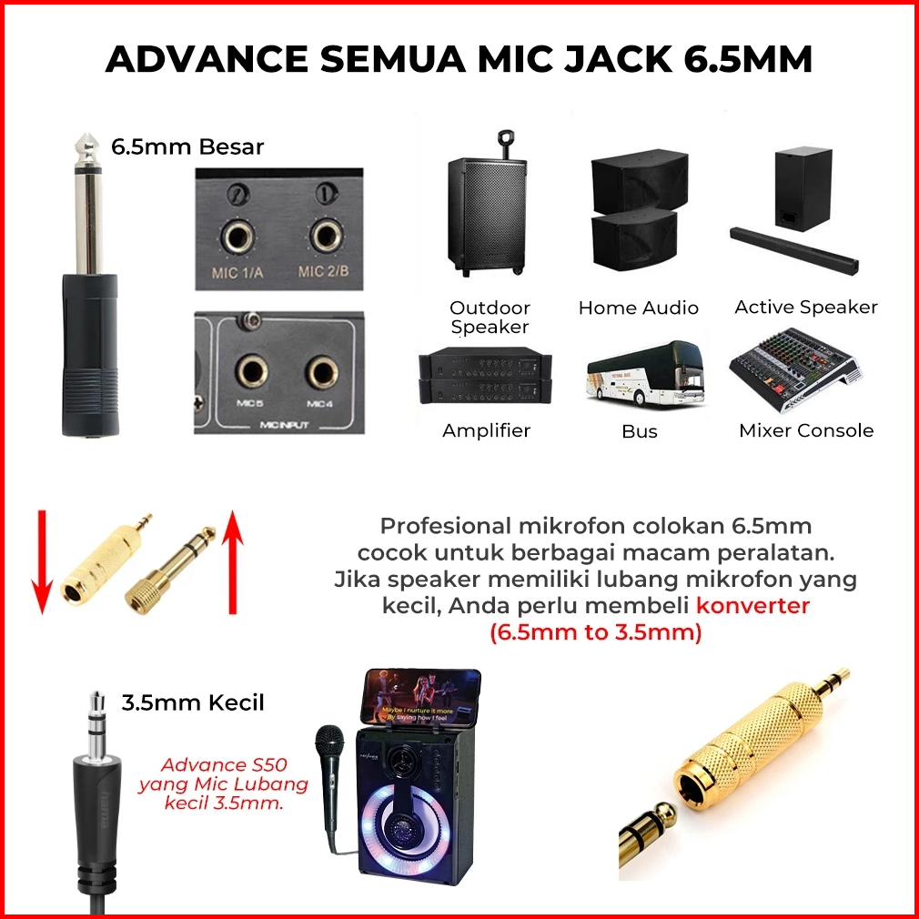 Luxsona Profesional Dynamic Microphone Ukuran Jack 6.35mm Murah Microphone Kabel Karaoke