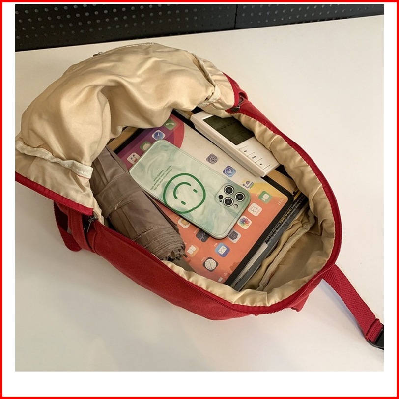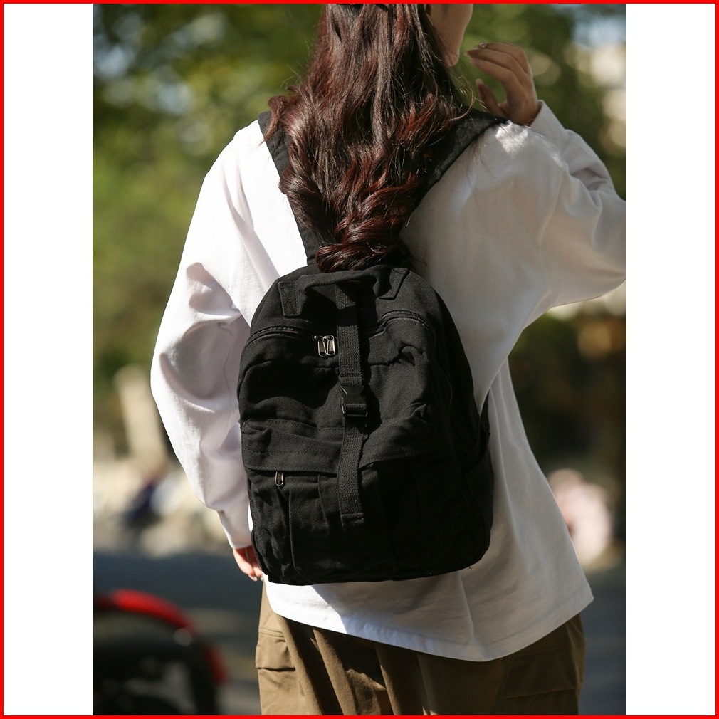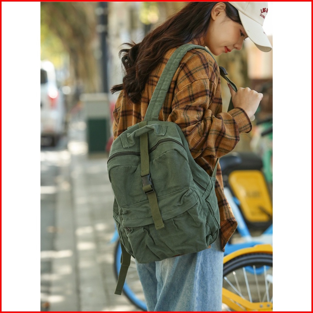 Onebear Tas Backpack Wanita Tas Ransel All-match Retro Korea Tas Ransel Malas Belum Dicetak Tas Kanvas Warna Polos Dicuc
