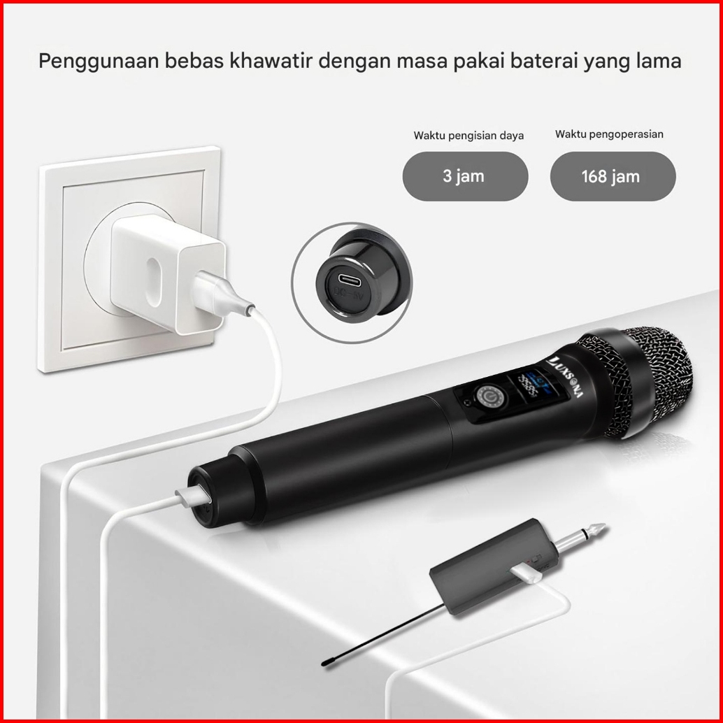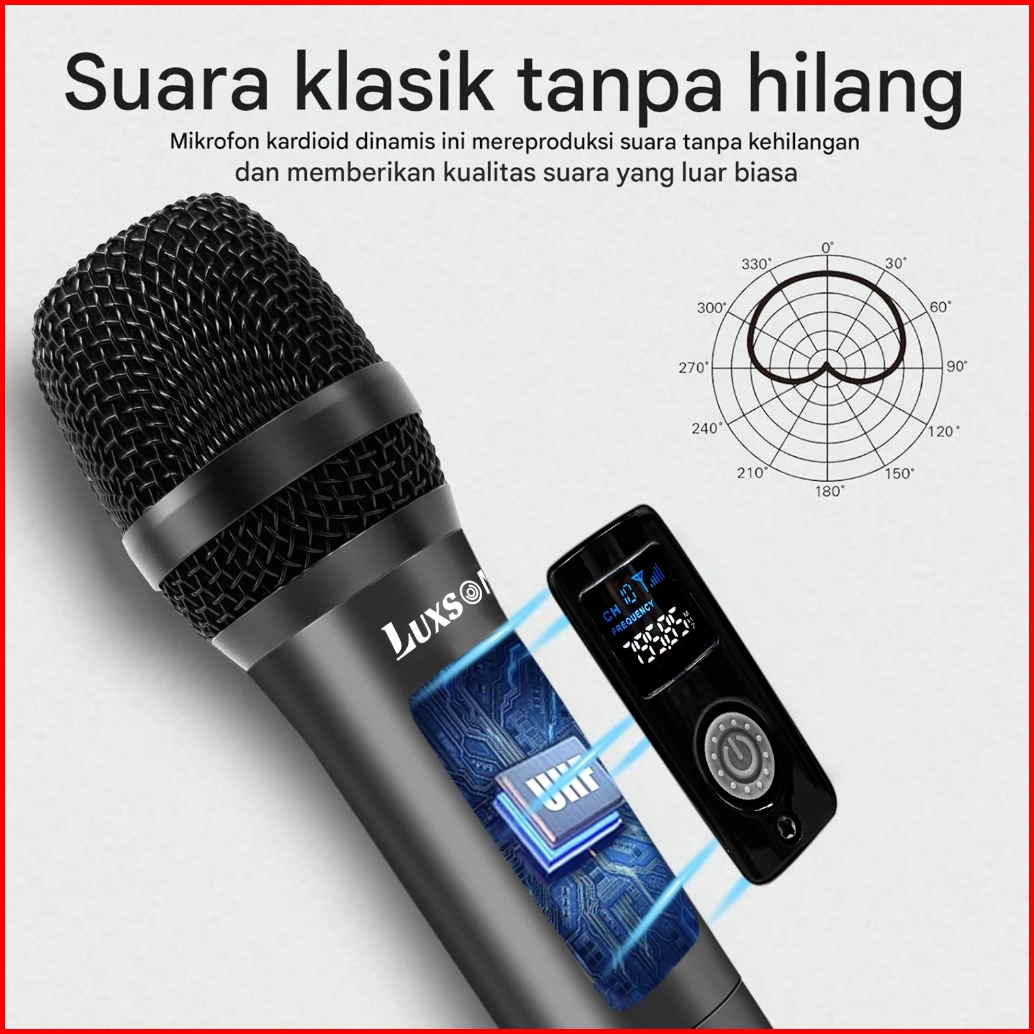 Luxsona Professional Wireless Mic Karaoke Meeting Hi-fi Besar Mikropon Uhf Tanpa Kabel Rechargeable Dynamic Mic