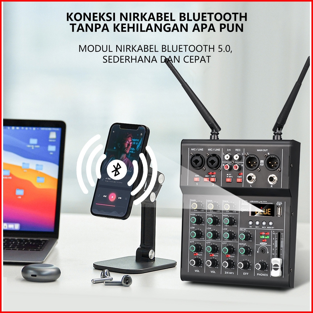 Luxsona 4 Chanel Mixer Audio Profesional Termasuk 2 Mikrofon Wireless Uhf Audio Amplifier Mendukung Fungsi Bluetooth Usb