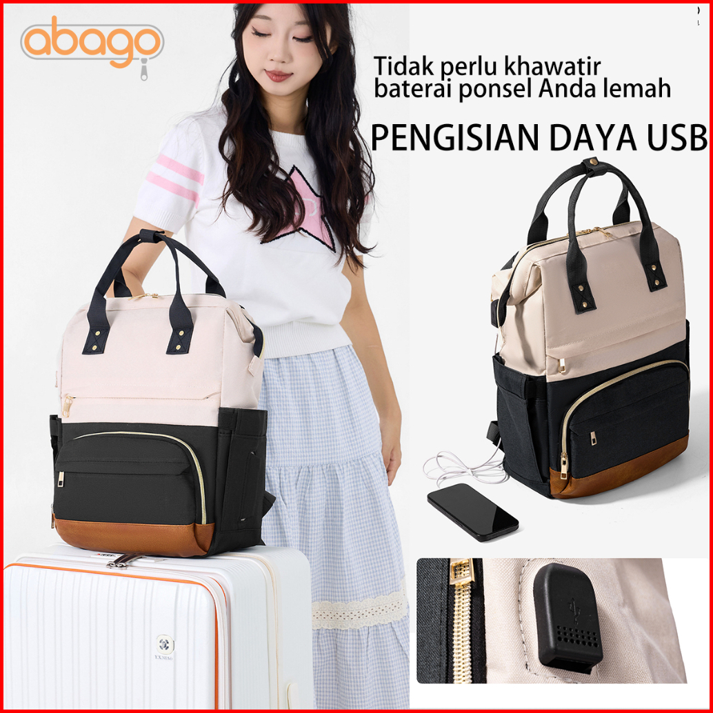 Abago Tas Ransel Backpack Multifungsi Dengan Banyak Kompartemen Cocok Kerja Kuliah Mom Bag