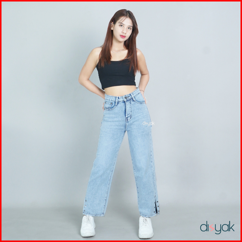 Disyak - Boyfriend Highwaist Ankle Slit Jeans Non-stretch Light Blue 653-753
