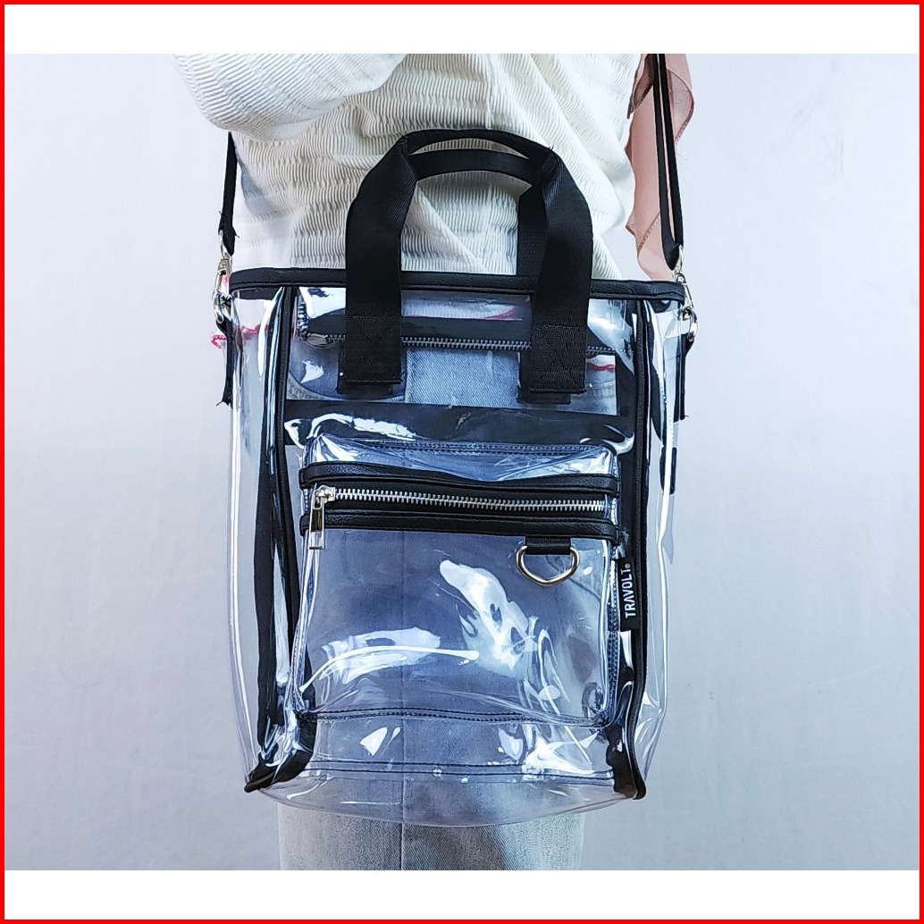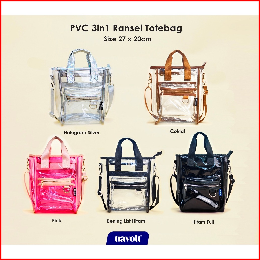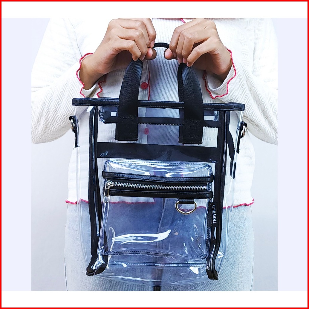 Tas Ransel 3in1 Transparan - Travolt - Backpack Pvc Mika Tebal - Tas Konser Kpop - Pink - Neural