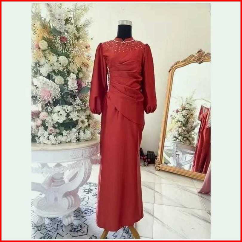 Vina Dress Spesial Burgundy Gaun Pesta Kondangan Viral Duyung Baju Wanita Kekinian Bridesmaid