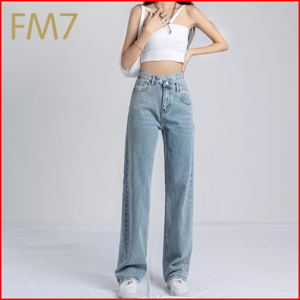Fm7 L22 Korean High Waist Straight Bagy Jeans Denim Wanita - Biru