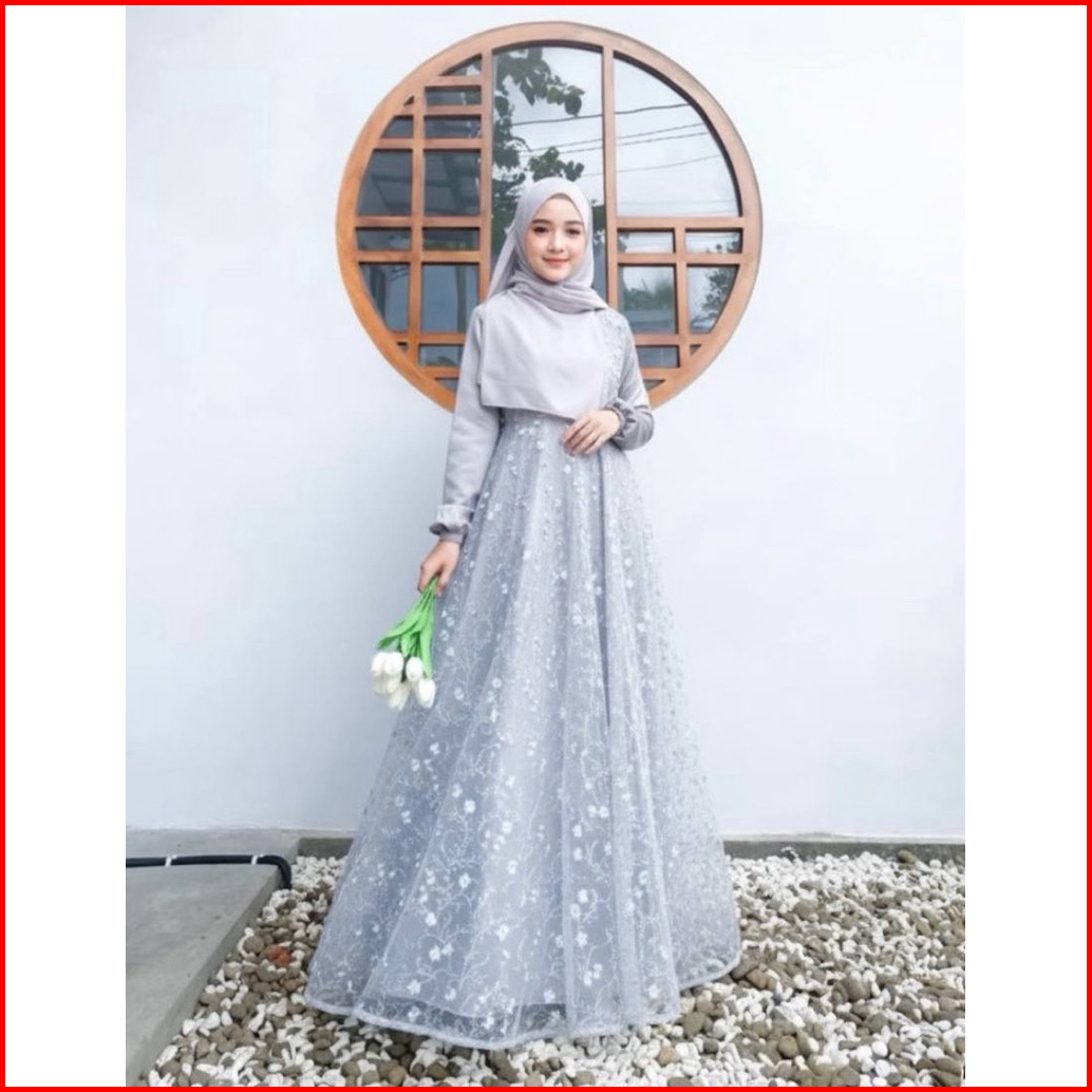 Gamis Brokat Mewah Dress Bridesmaid Melody Gaun Pesta Pernikahan Kondangan Dress Wisuda Model Terbaru Gamis Brukat Lebar