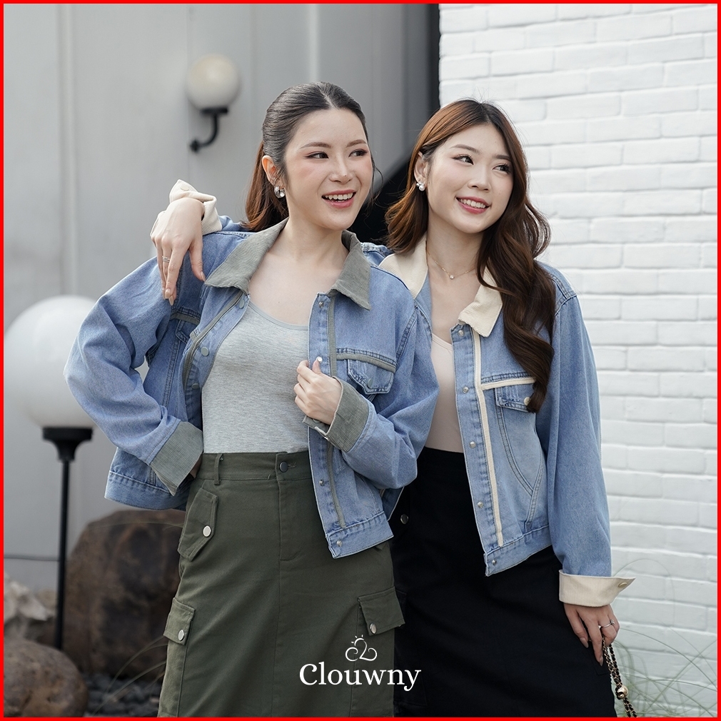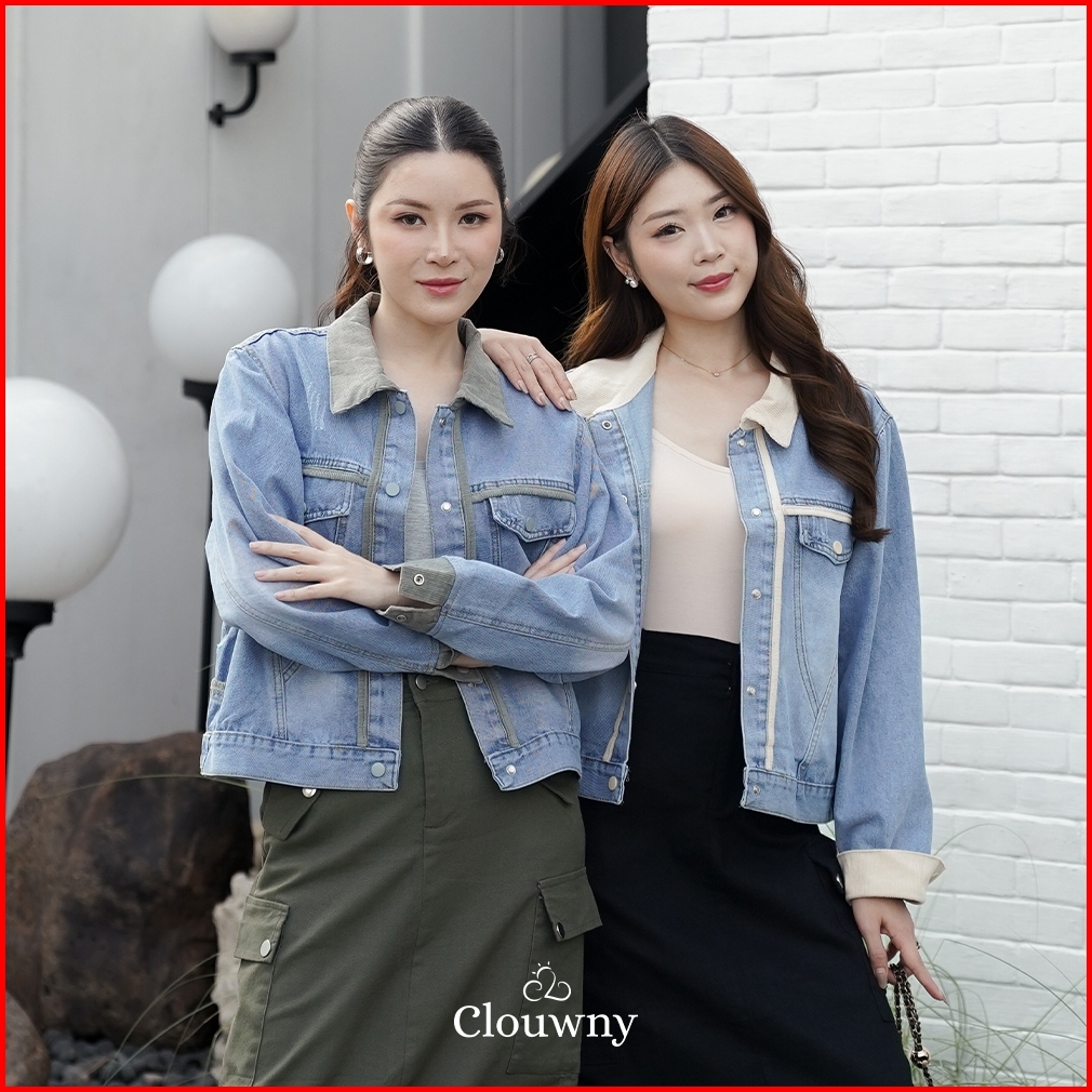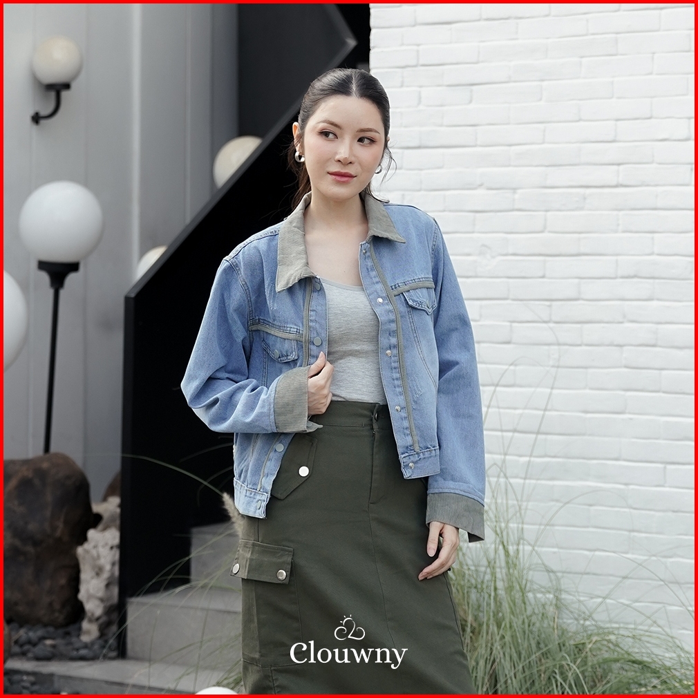 Clouwny Gaby Denim Jacket Casual Outerwear Wanita Premium Denim