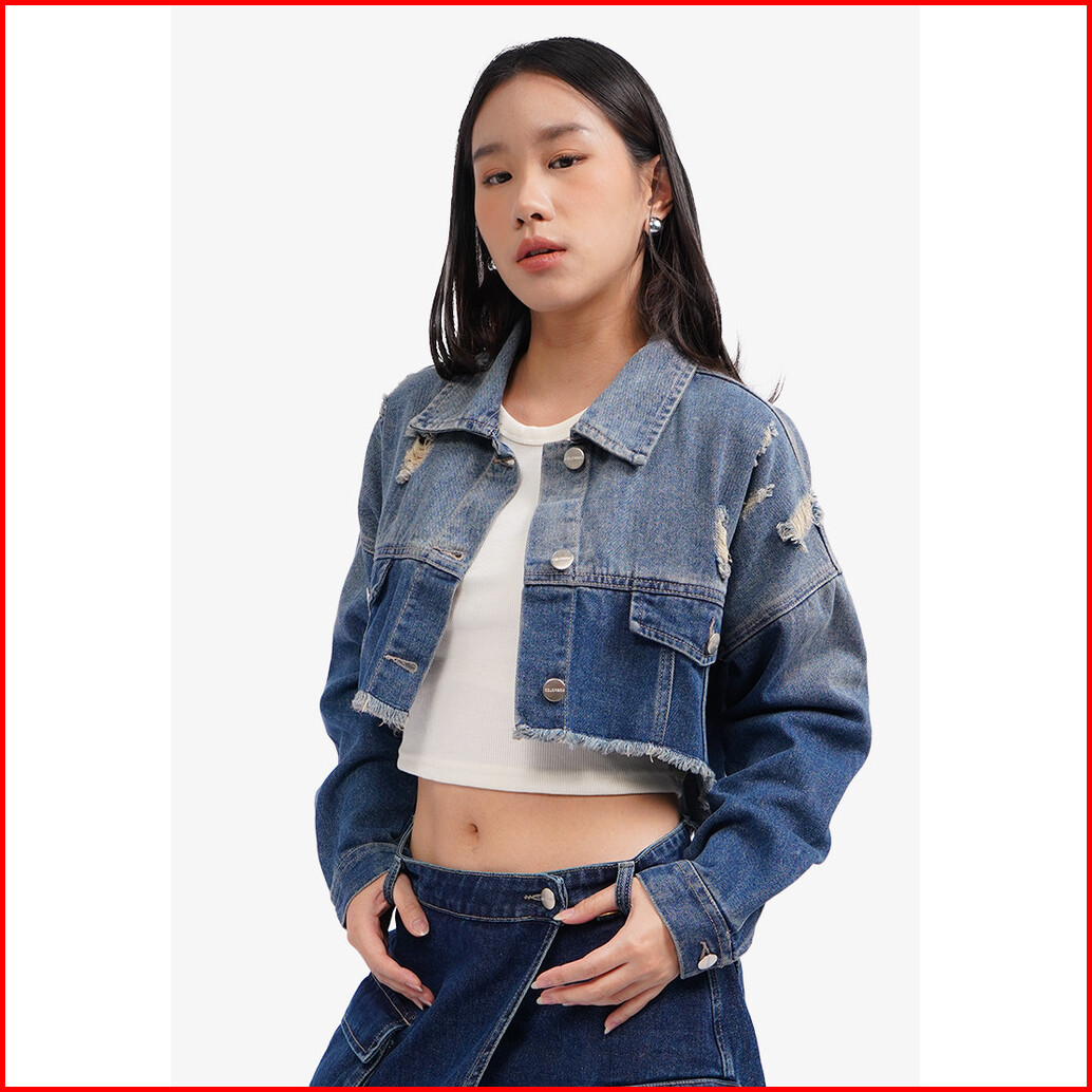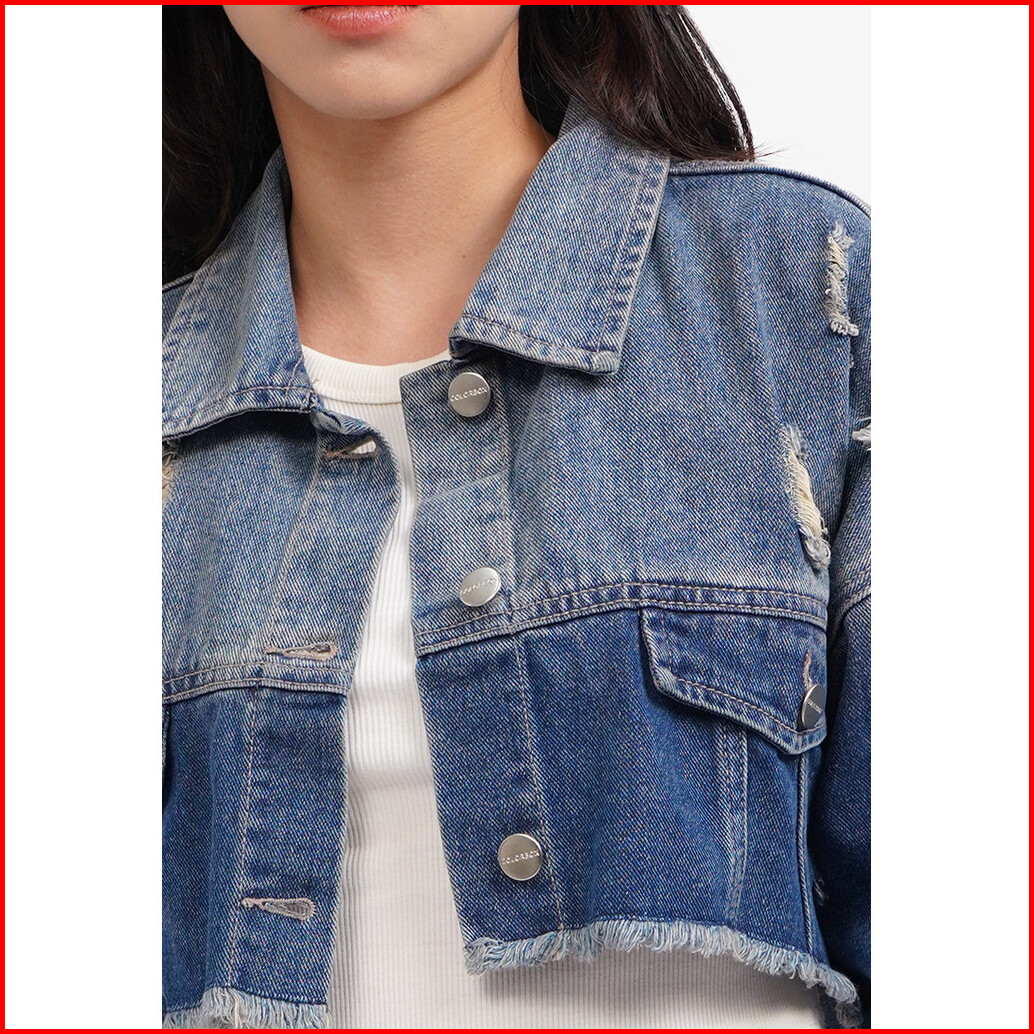 Colorbox Ripped Denim Jacket Med Blue