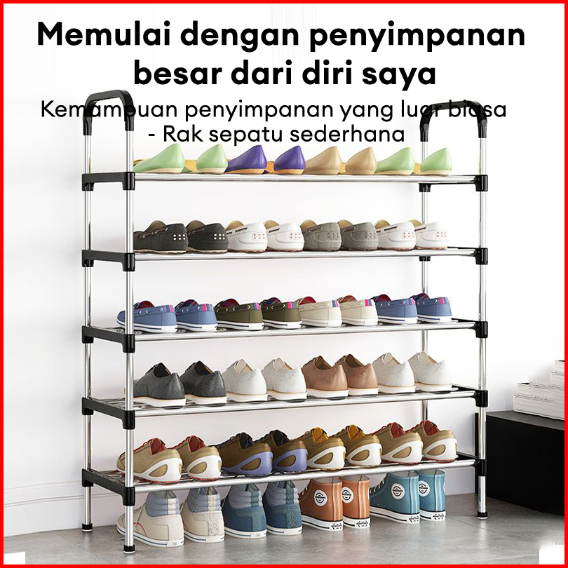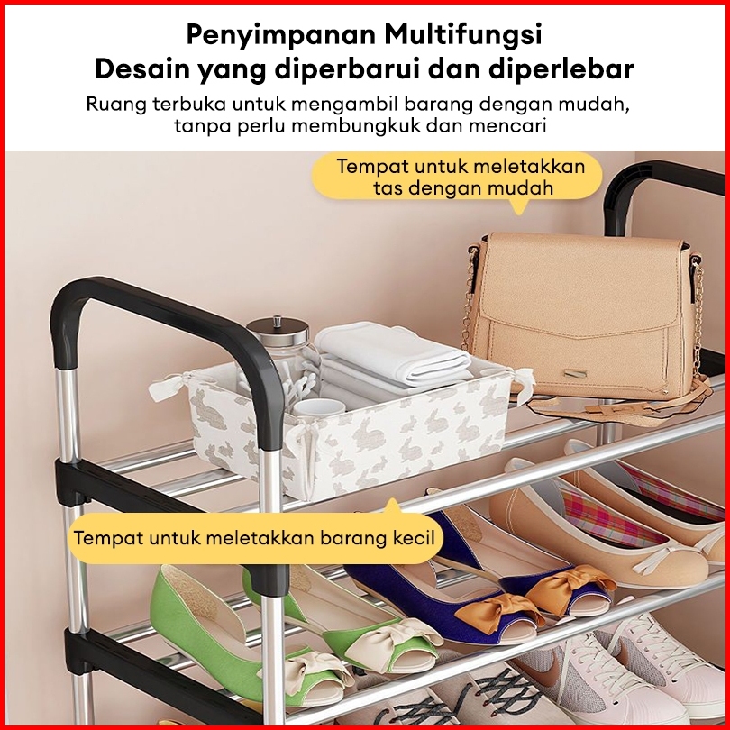 Rak Sepatu 8 Susun Stainless Steel Kuat Tempat Sepatu Sandal Multifungsi Besar 133x55x26cm