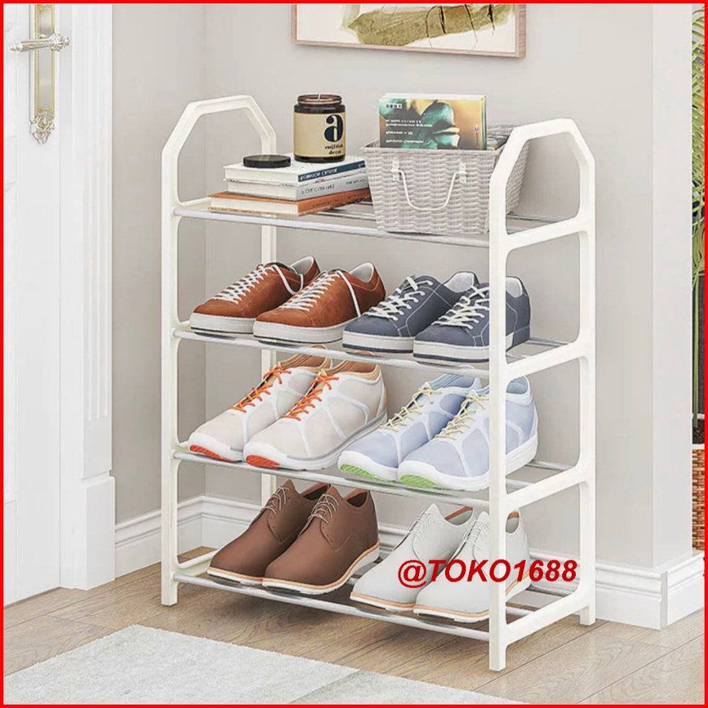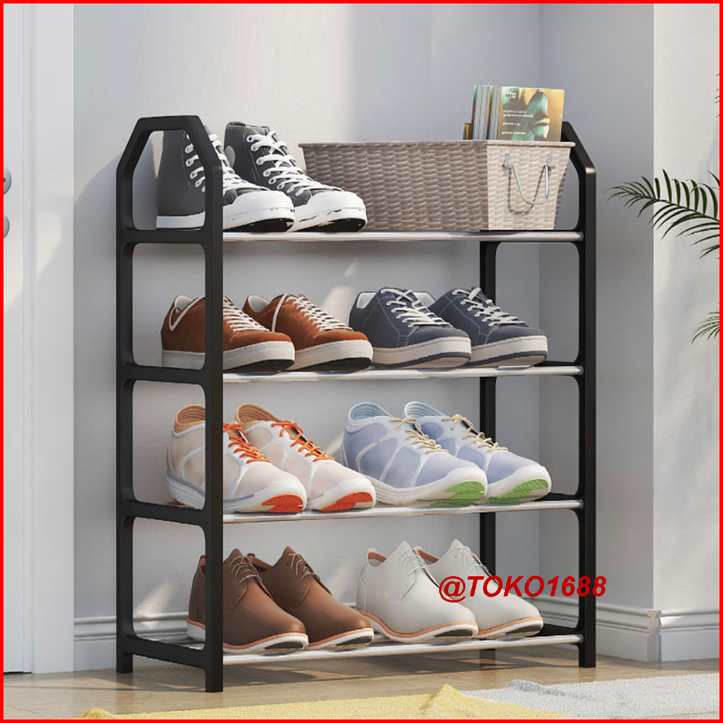 Rak Sepatu Hitam Rak Sandal Susun Tempat Sepatu Sandal 4 Tingkat Bahan Besi