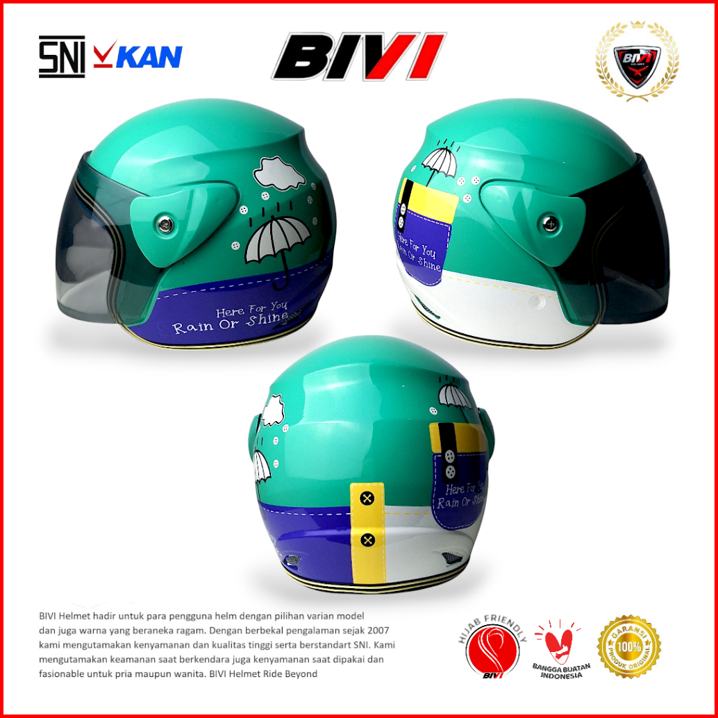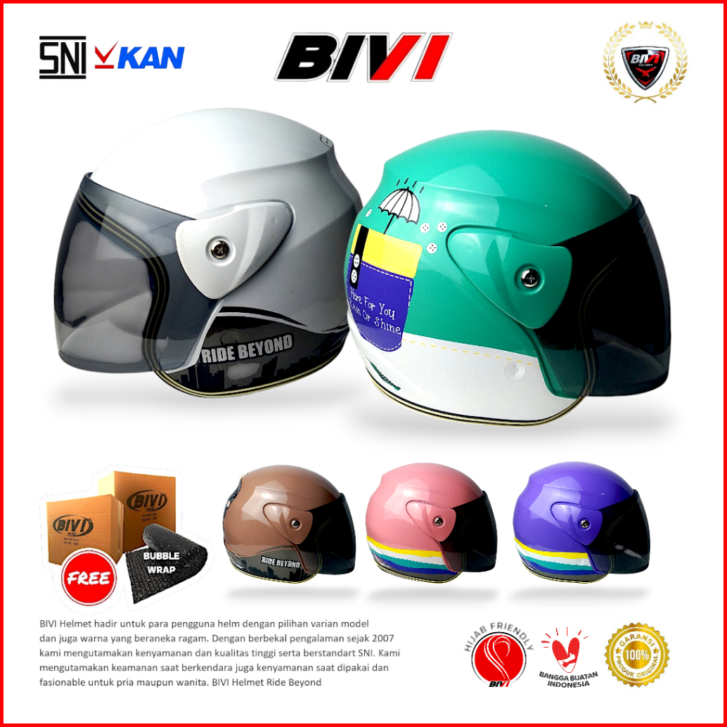 Helm Bivi Evo Motif Kaca Half Face Sni Pria Wanita Hijab