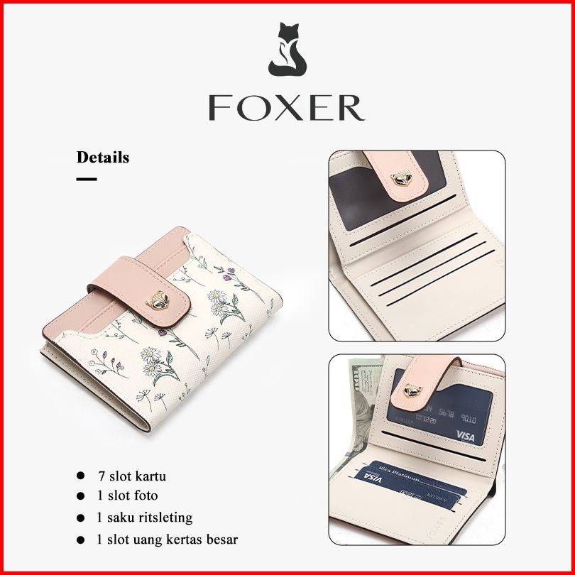 Foxer Dompet Pendek Wanita Dompet Koin Segar Kecil Dompet Pelajar Tempat Kartu