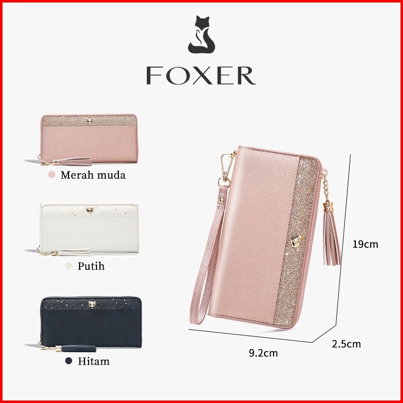 Foxer Dompet Kulit Sapi Dompet Panjang Mewah Tempat Kartu Kredit Dompet Koin