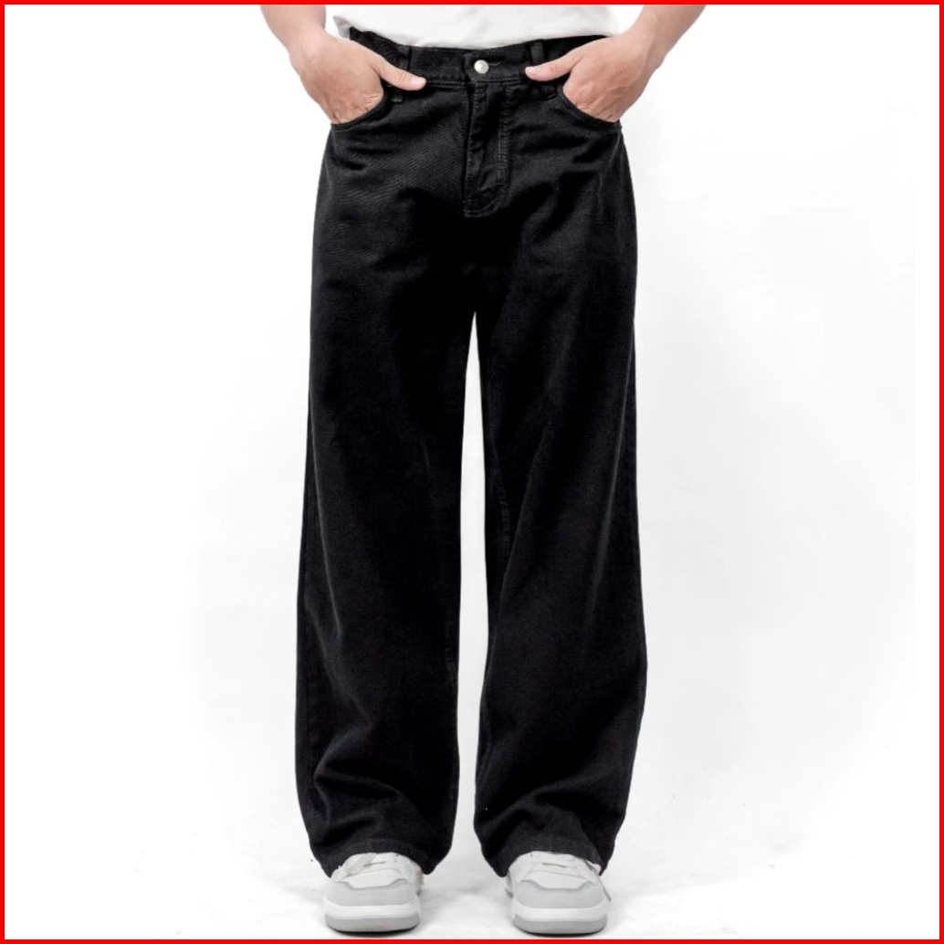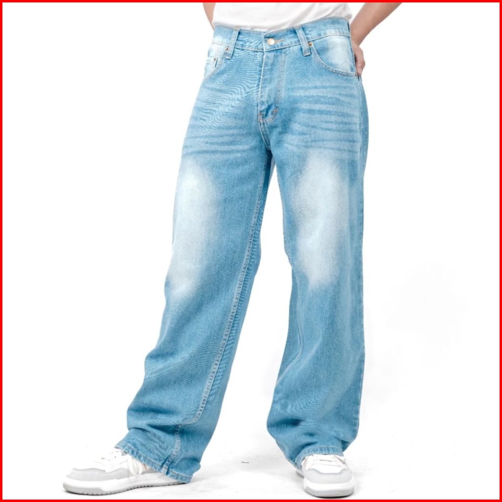 Celana Jeans Pria Washed Loose Straight Pants Korean Style Reguler Git Gombrang
