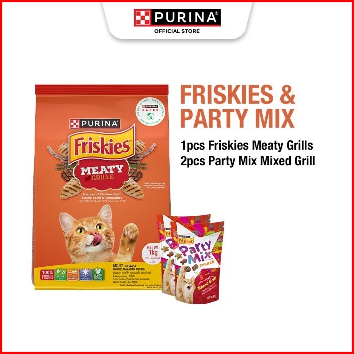 Friskies Adult Meaty Grills 1kg Party Mix Adult Mixed Grill 60g X2pcs