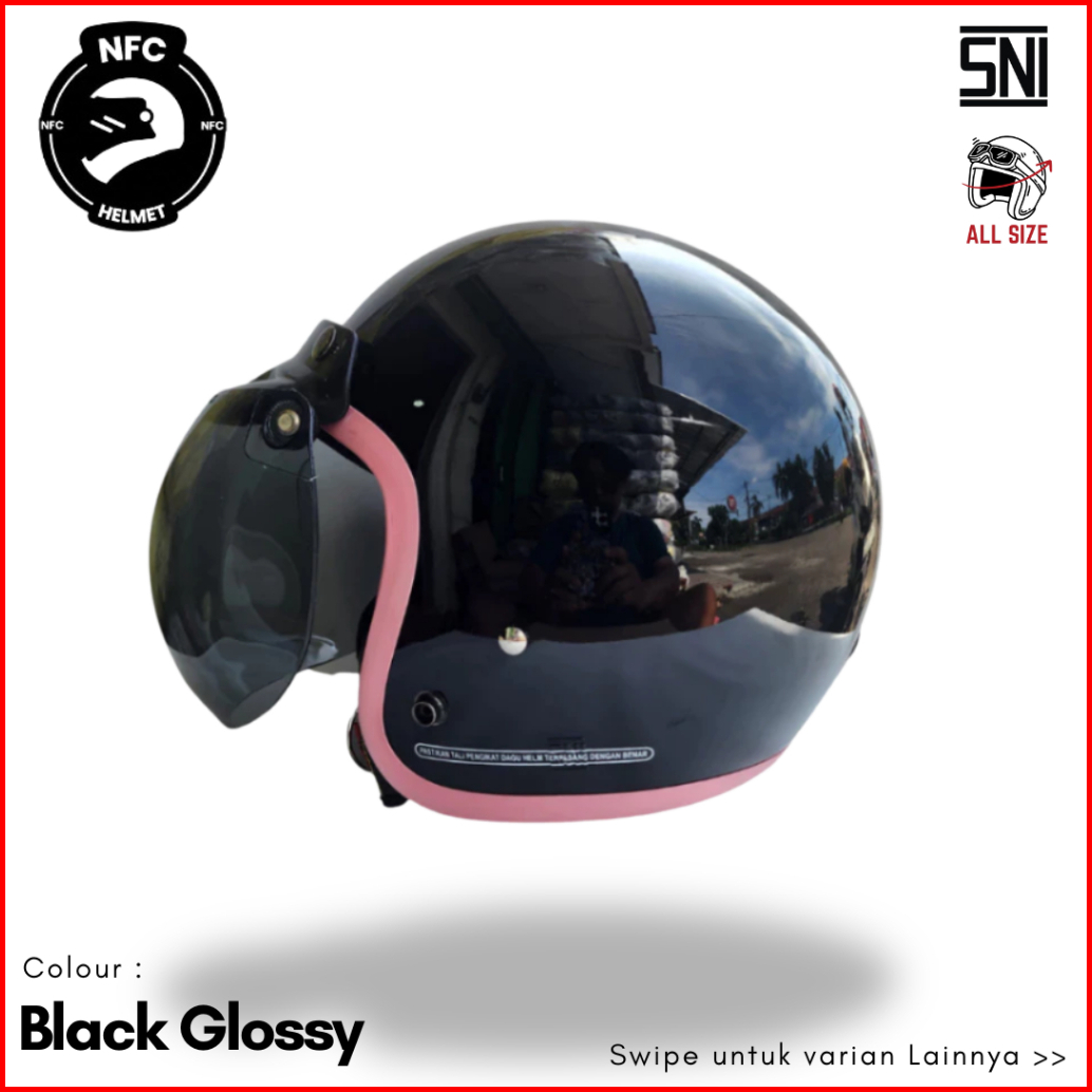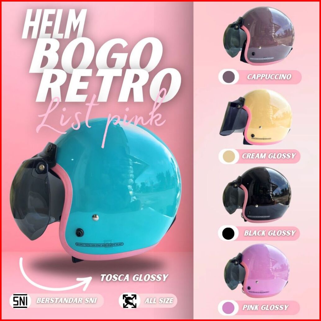 Helm Bogo Dewasa Classic Polos Half Face Murah Cowok Cewek Hijab List Pink Original Hds Helmet