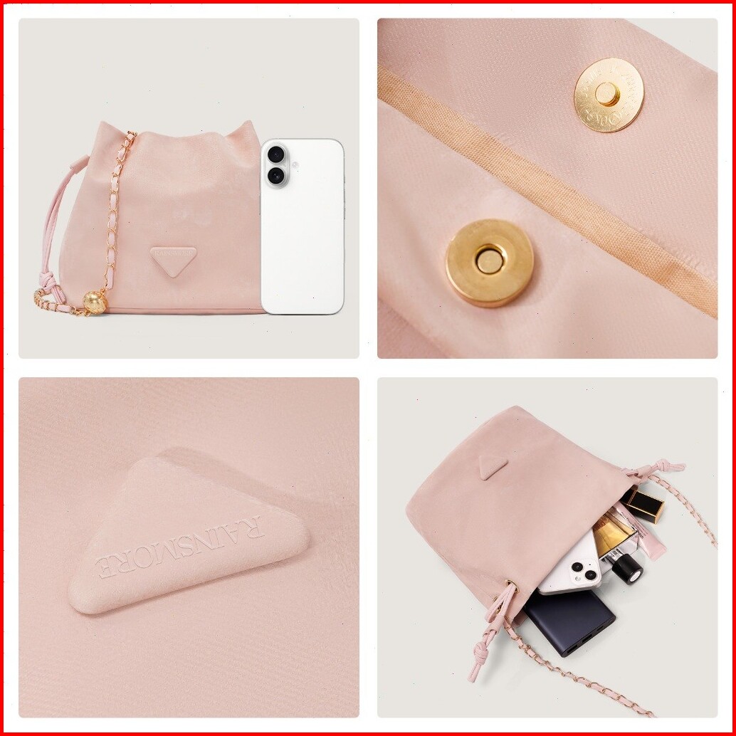 Tas Mini Wanita Elegan Unik Rainsmore Model Baru Kulit Lembut Bisa Selempang Rantai Bahu Bucket Bag