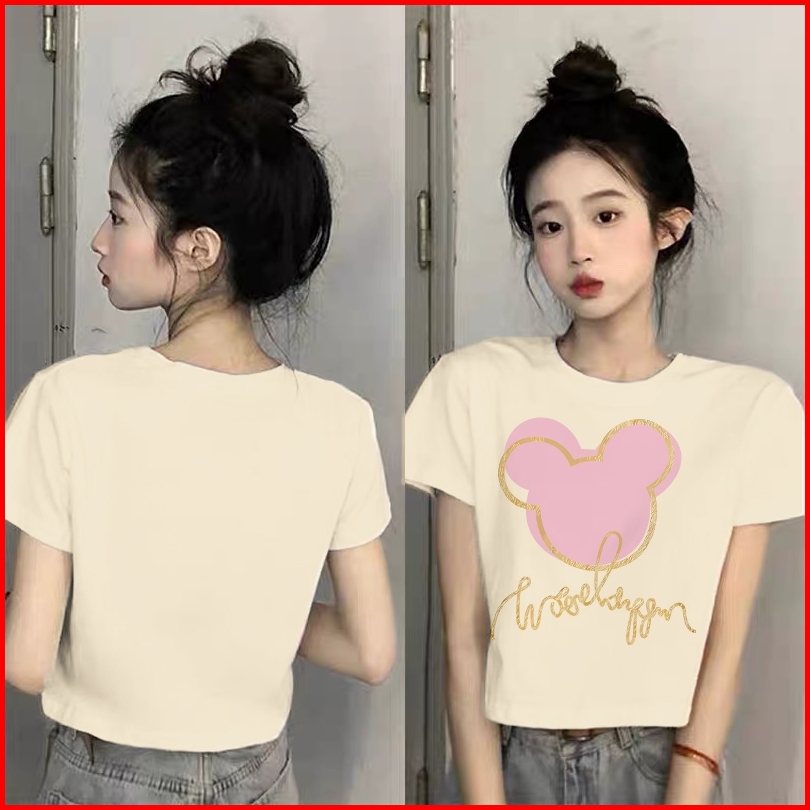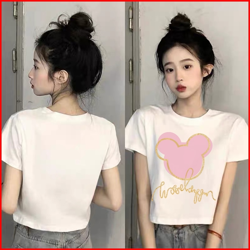 The Monseur Gallery T-shirt Crop Top Kaos Wanita Crop Top Korea Cartoon Mickey Mouse Avatar Baju Croptee Hitam Korea