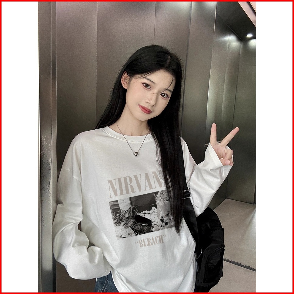 The Monseur Gallery Baju Kaos Wanita Lengan Panjang Kaos Oversize Wanita Baju Atasan Wanita Nirvava Bleach Kaos Wanita H