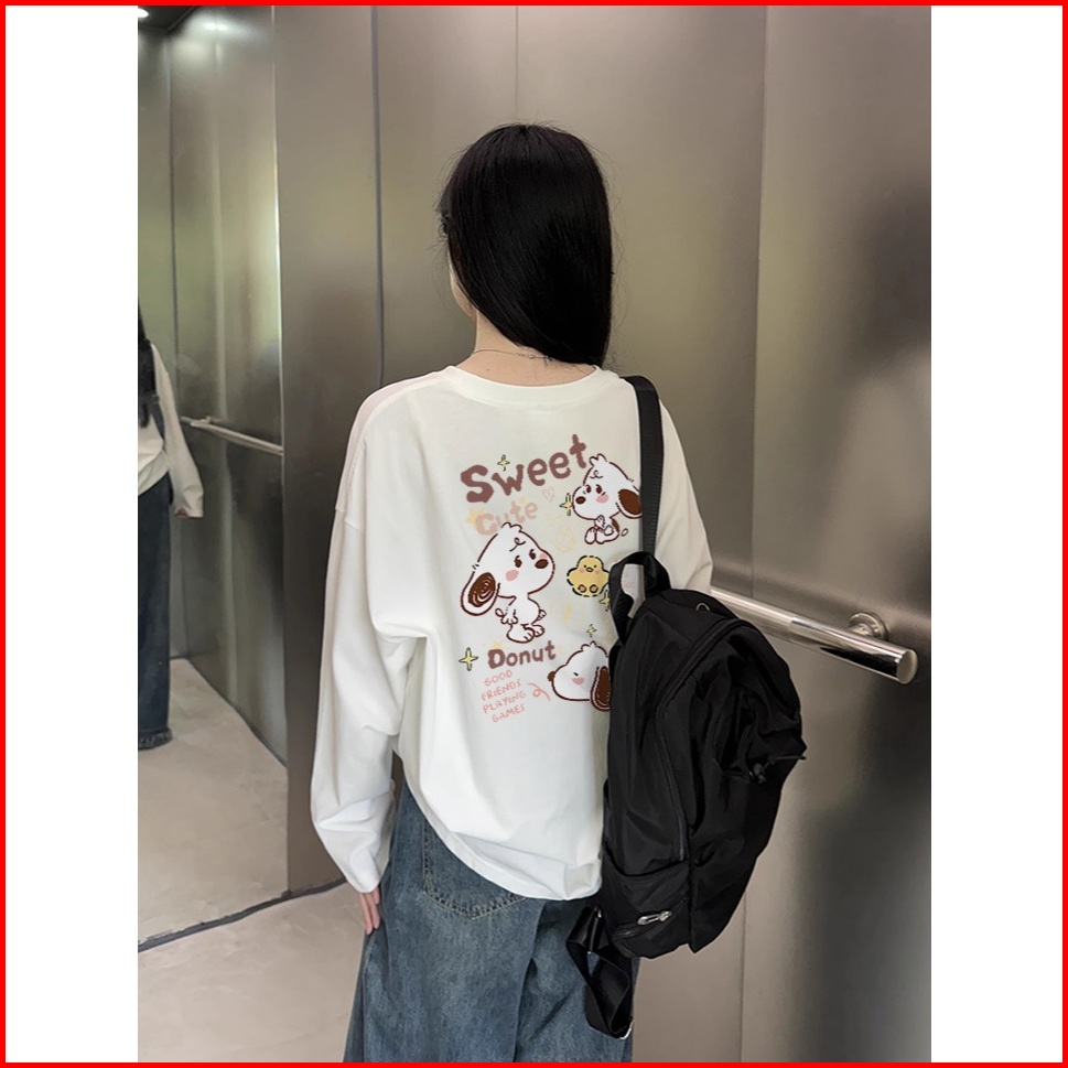 The Monseur Gallery Baju Kaos Wanita Lengan Panjang Kaos Oversize Wanita Baju Atasan Wanita Funny Cartoon Puppy Cartoon
