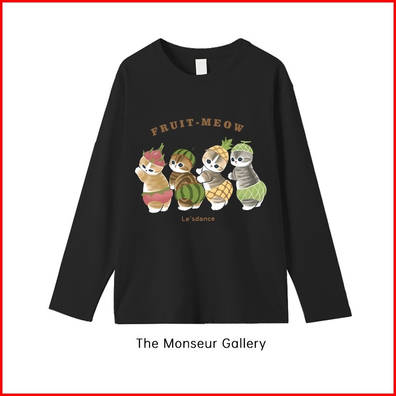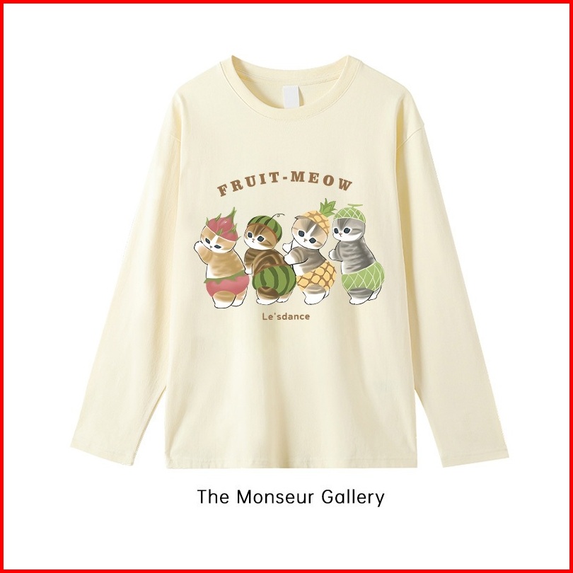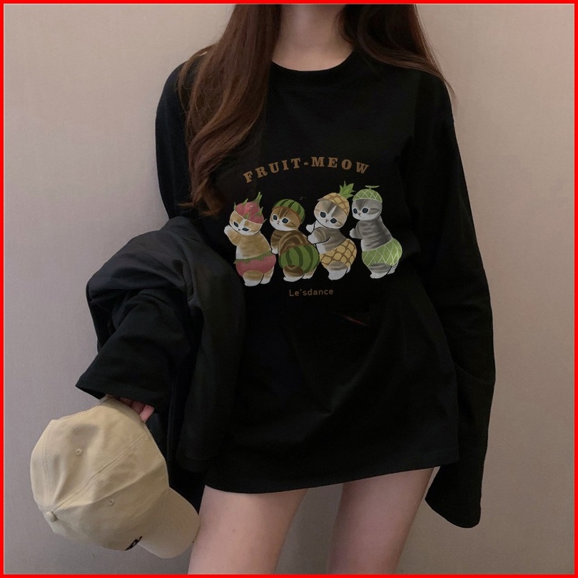 The Monseur Gallery Baju Kaos Wanita Lengan Panjang Kaos Oversize Wanita Baju Atasan Wanita Cartoon Fruit-meow Le S Danc