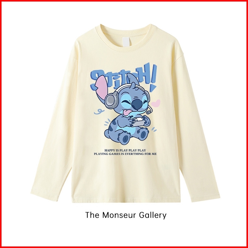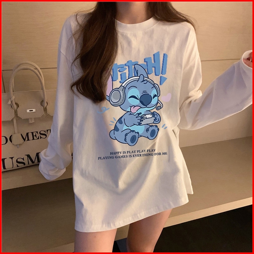 The Monseur Gallery Baju Kaos Wanita Lengan Panjang Kaos Oversize Wanita Baju Atasan Wanita Stitch Playing Games Kaos