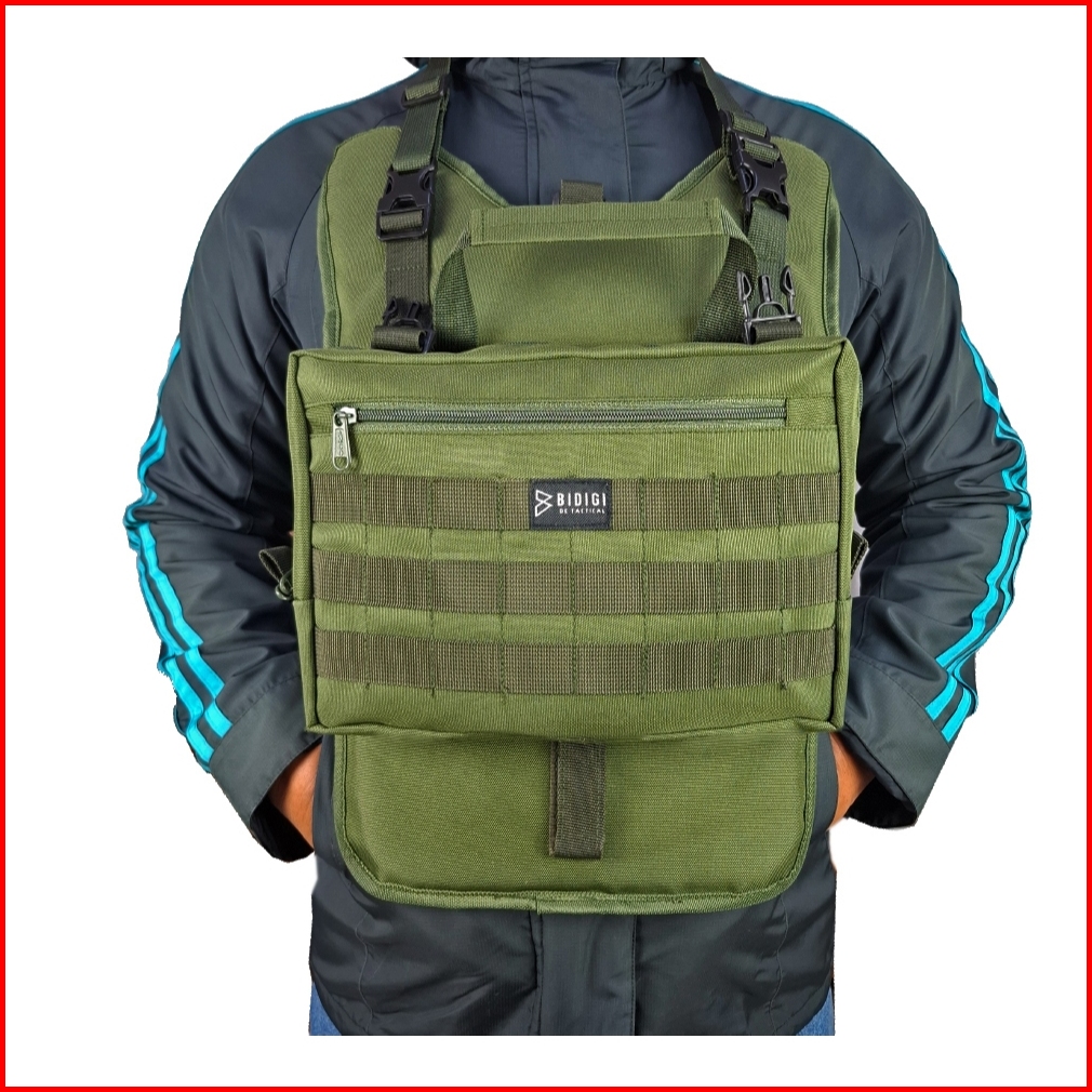 Bidigi Windbreaker Tas Slempang Slingbag Rompi Pria 2in1 Tactical Army