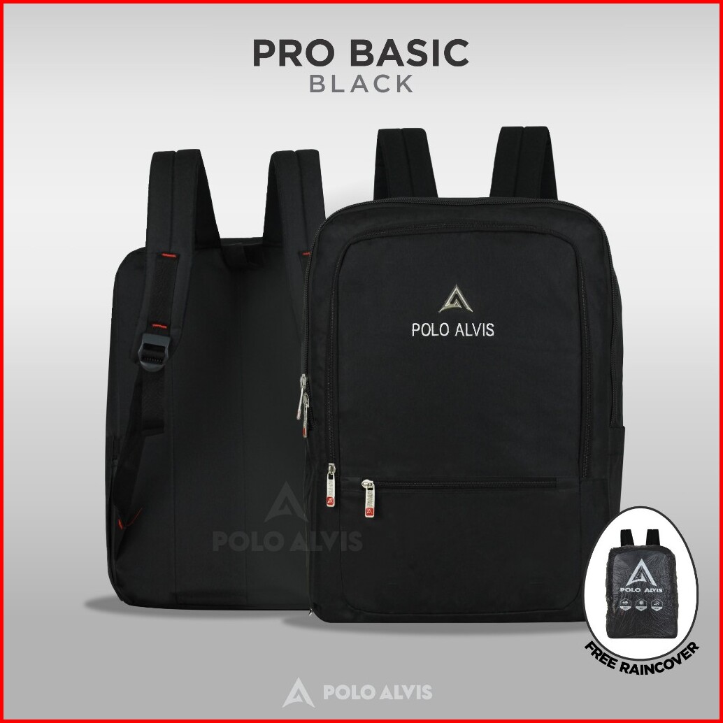 Polo Alvis - Pro Basic Black Tas Laptop Kantor Besar Tebal 16 In Ransel Pria Kerja Polyester Ringan