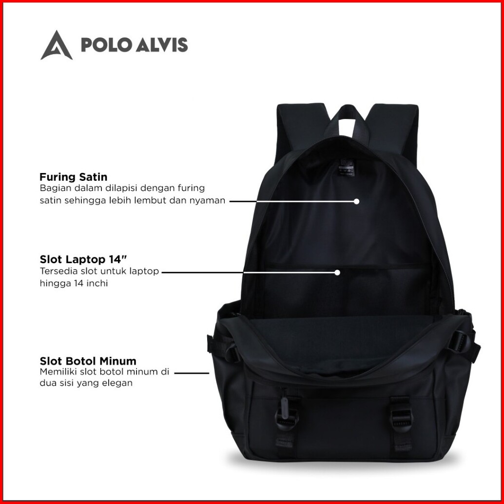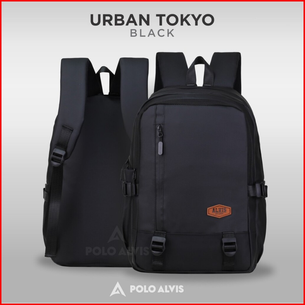 Polo Alvis - Urban Tokyo Tas Ransel Waterproof Pria Modern Simple Antiair Hitam Sekolah Distro Black