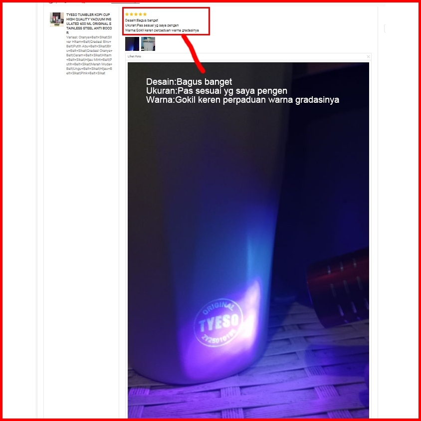 Tyeso Tumbler Kopi Cup High Quality Vacuum Insulated 600 Ml Original Stainless Steel Anti Bocor