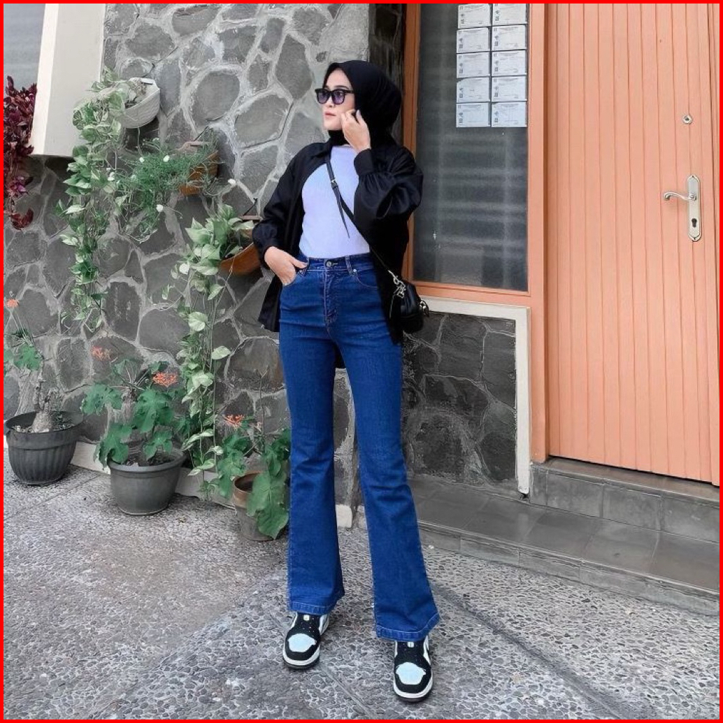 Celana Jeans Cutbray Highwaist Loose Streach Wanita - Highwaist Cutbray Jeans Wanita Kekinian
