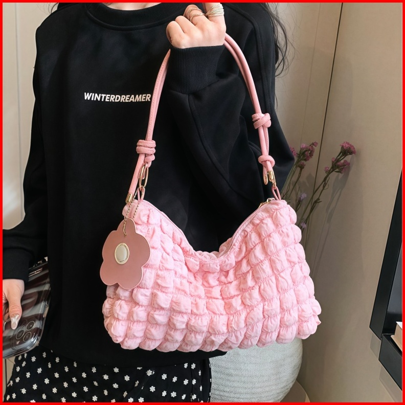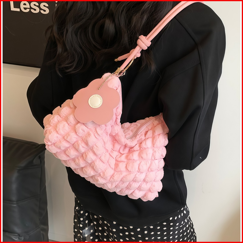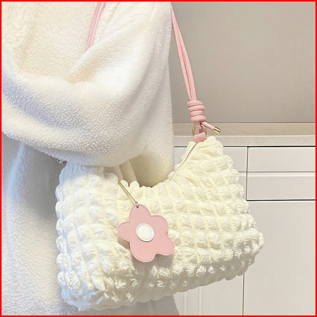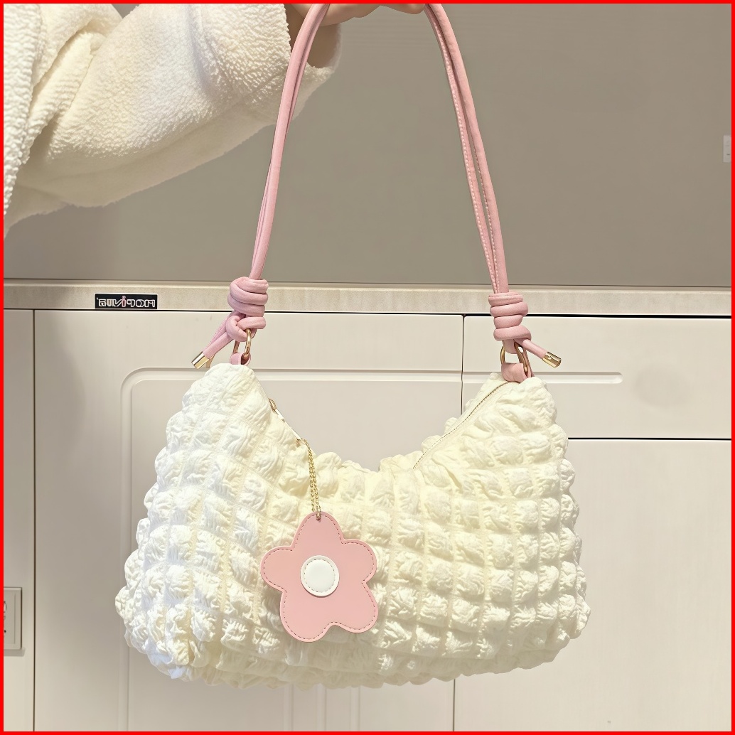 Cantikero Tas Selempang Wanita Lucu Puffy Sling Bag Tas Awan Wanita Selempang Gantungan Bunga Fashion Korean Style Denga