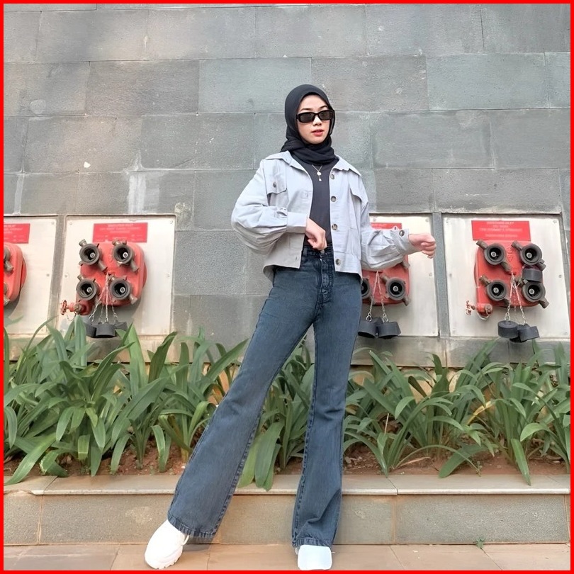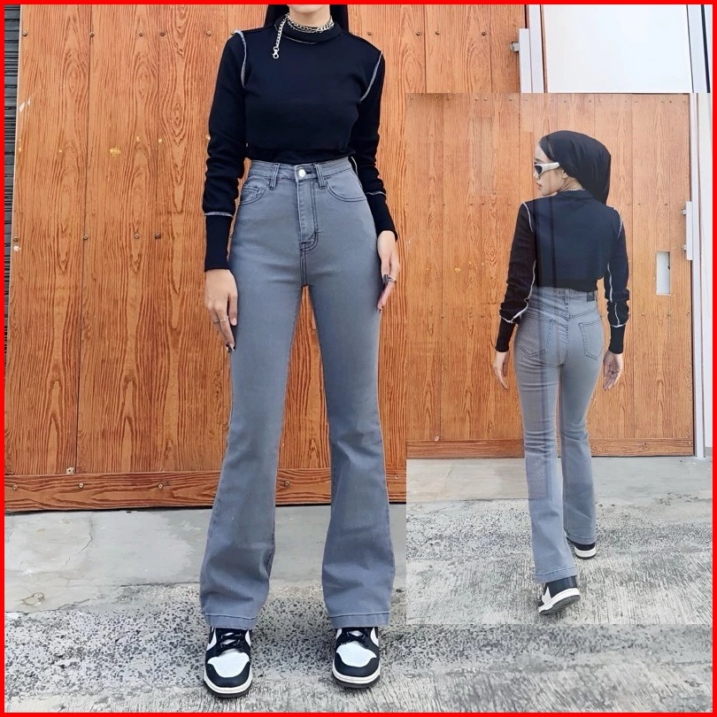 Highwaist Jeans Cutbray Loose Stretch-celana Jeans Wanita Kekinian Premium Panjang Cewek Denim