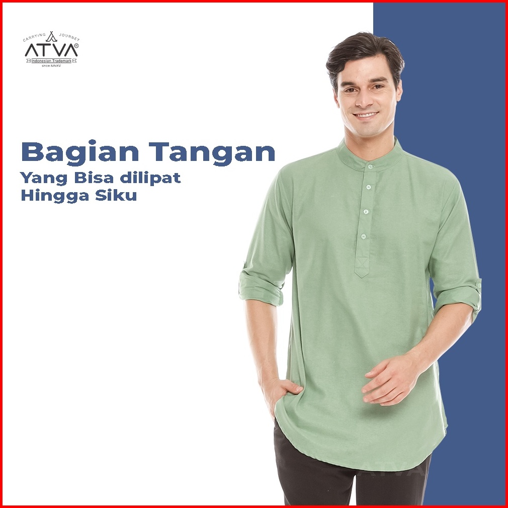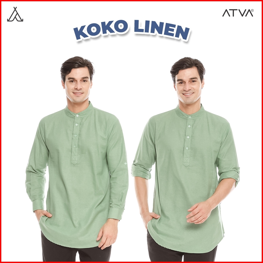 Baju Koko Kurta Pria Bahan Linen Tangan Panjang Warna Mint Atau Sage Green Kemko Hijau Muda Atva