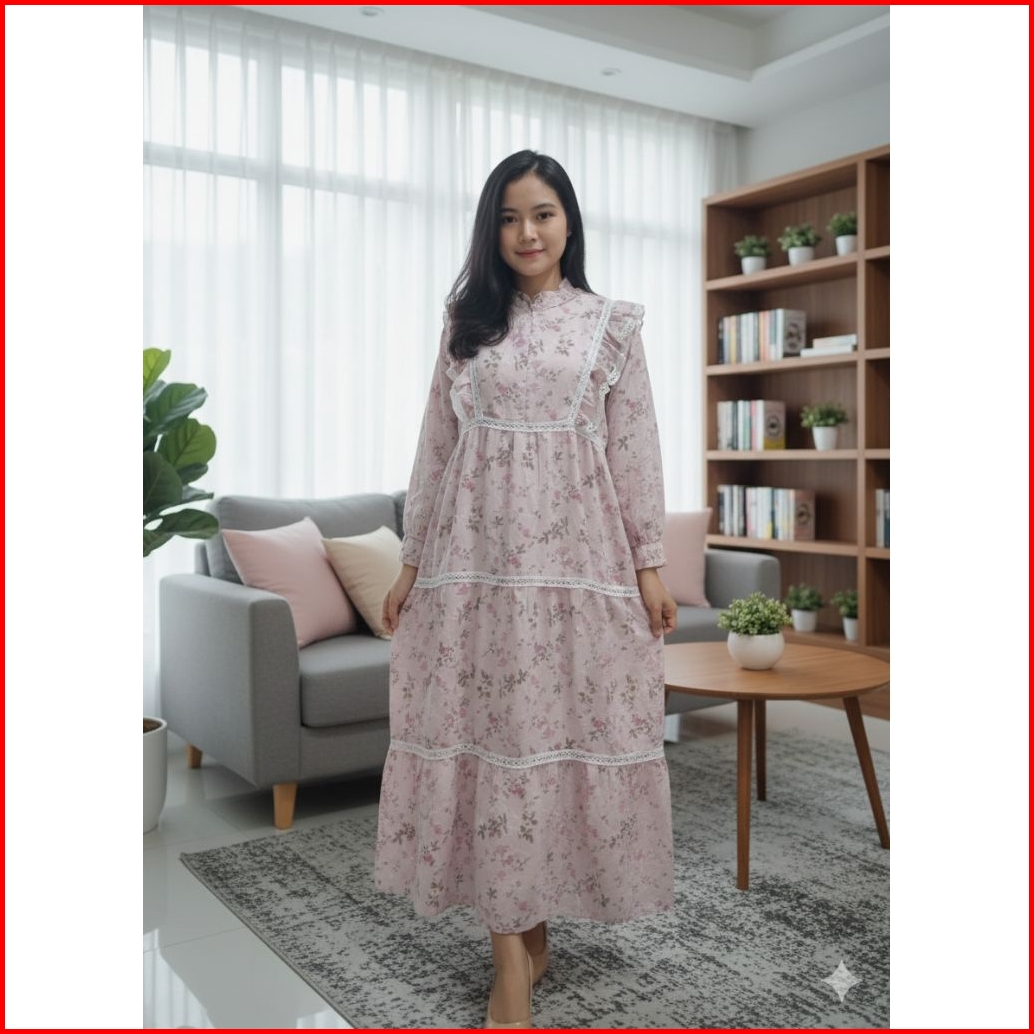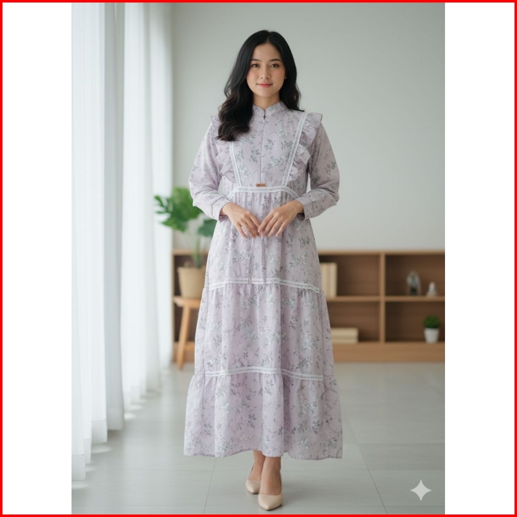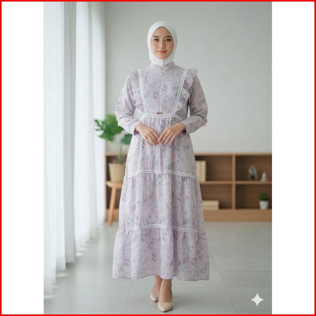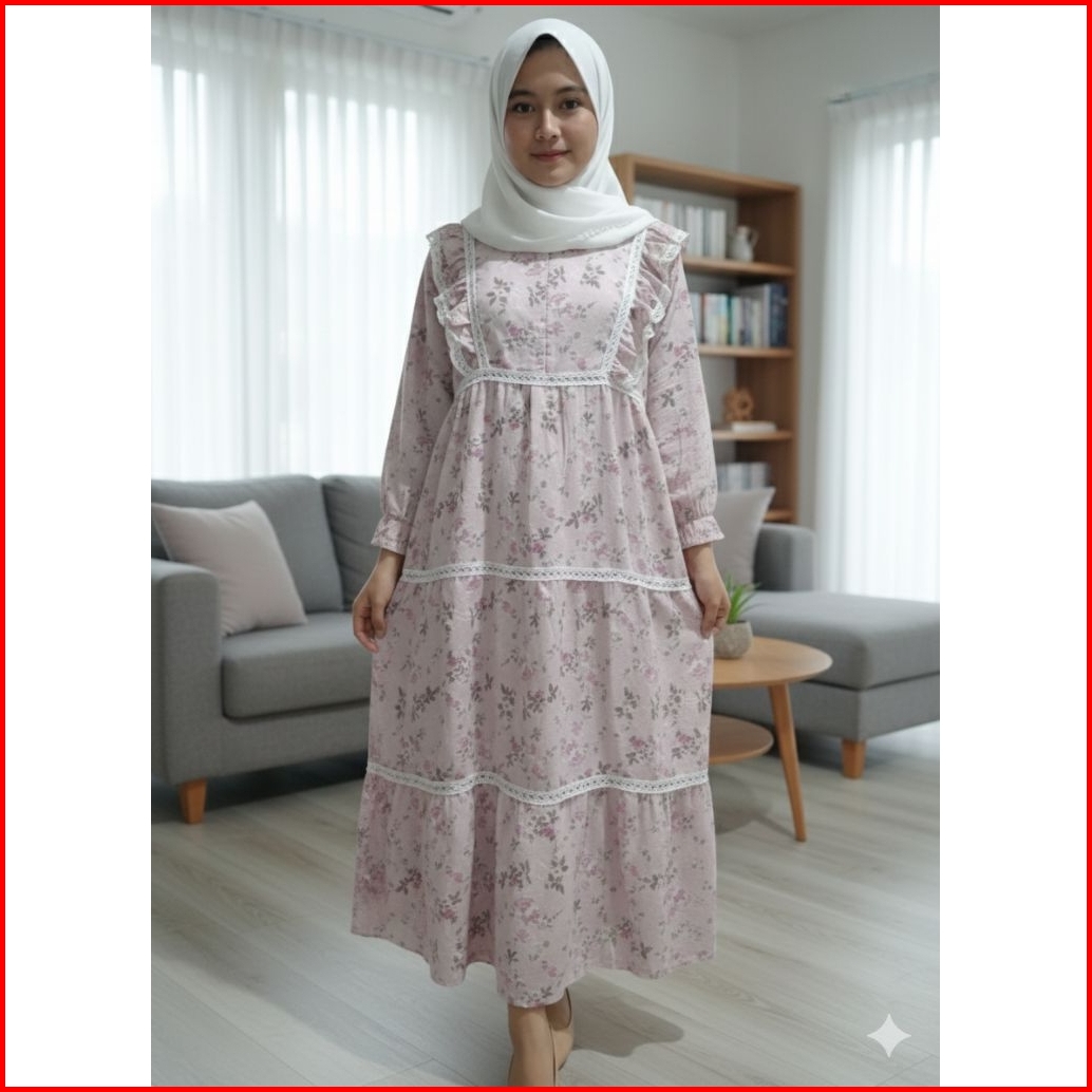 Terbaru Wilona Dress Gamis Midi Lebaran 2026 Bahan Katun Katbol Premium Mix Renda Burkat Sleting Depan Busui Model Terba