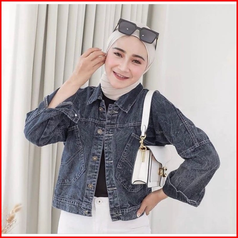 Hicoo Quinn Jaket Jeans Crop Wanita Oversize Terbaru