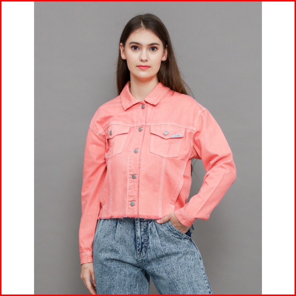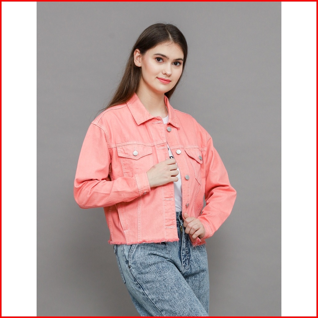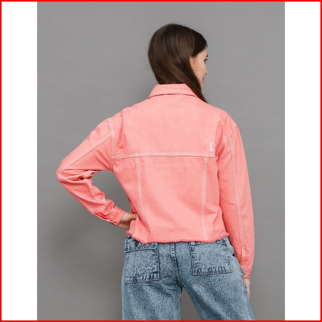 Jaket Jeans Wanita 096trj22003twill Overdyed Trucker Raw Edge Slim Fit Peach