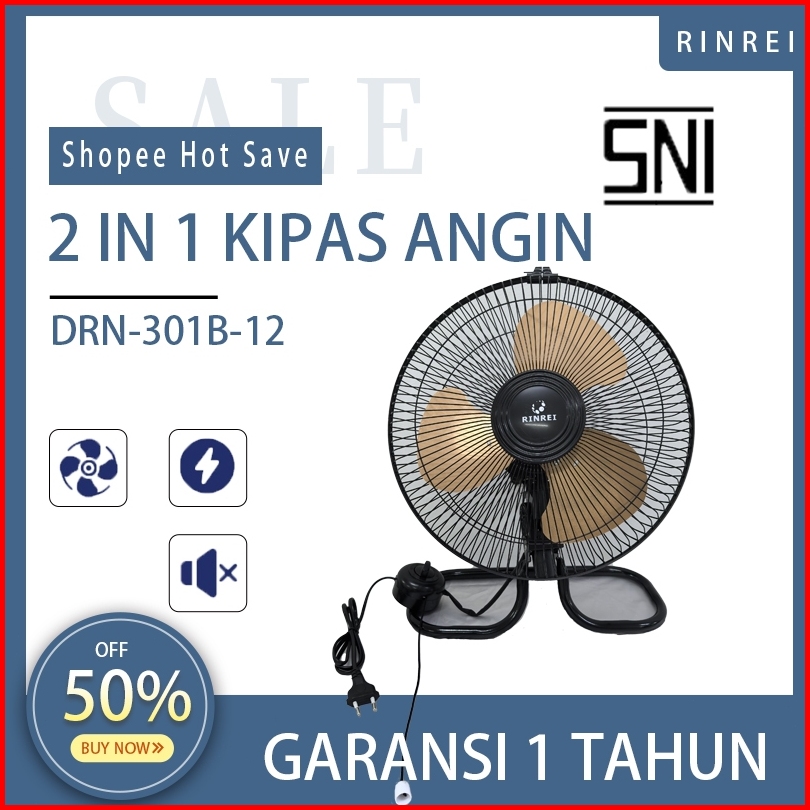Kipas Angin Besi Tornado Jumbo Rinrei 12 Inch 2in1 Stand Fan Desk Fan Bukan Dinding Hemat Daya Gratis Ongkir Original Re