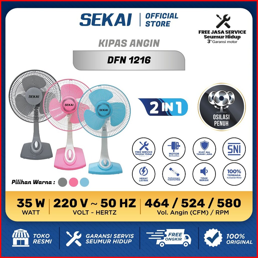 Sekai Kipas Angin Meja Kipas Angin Dinding 2 In 1 12 Inch - Dfn 1216 Dfn 1217 Dfn 1218