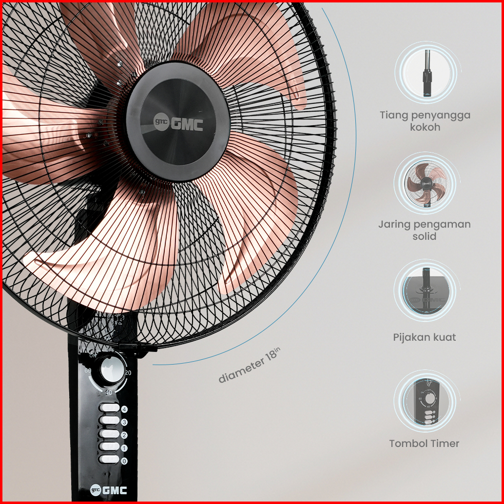 Gmc Kipas Angin 328 Seri Besi Kipas Lantai 18 80w Baling-baling Besi