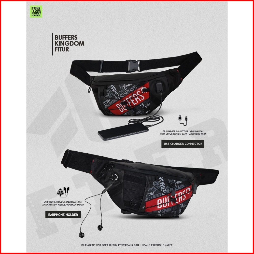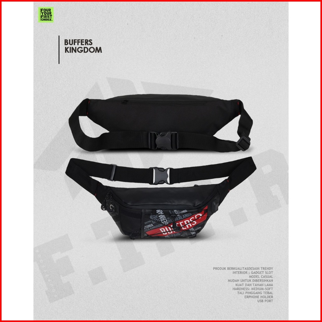 Buffers Kingdom - Tas Waistbag Pria Casual - Tas Pinggang Waterproof